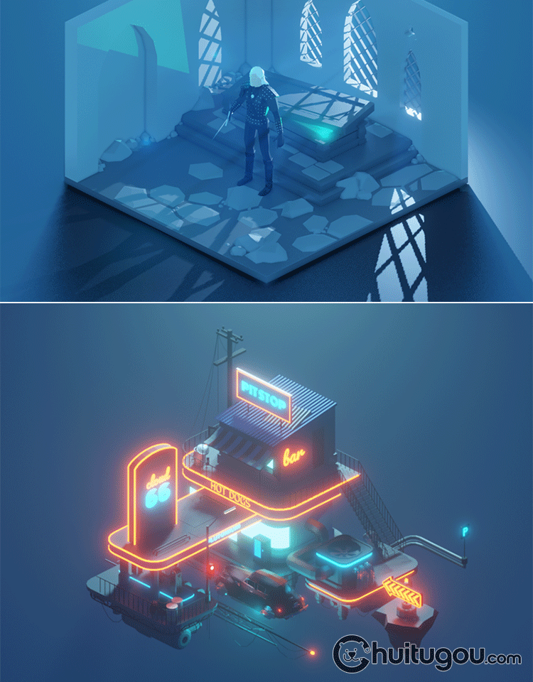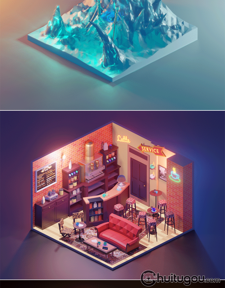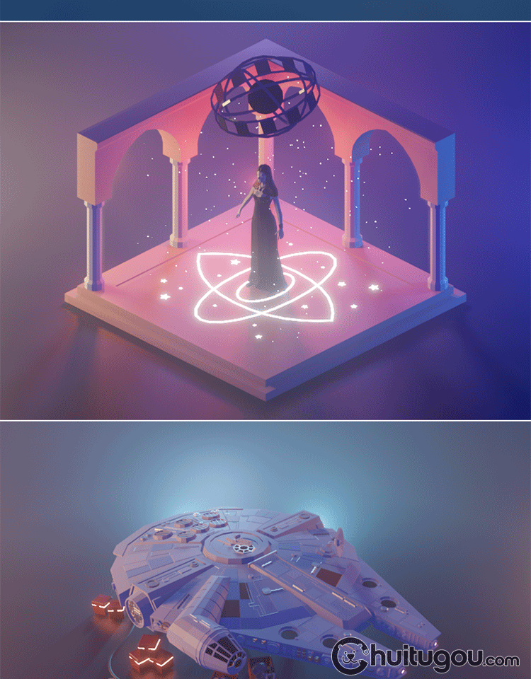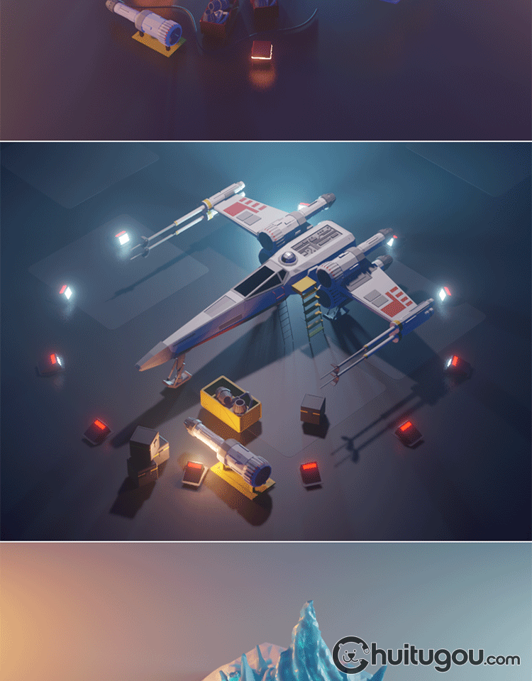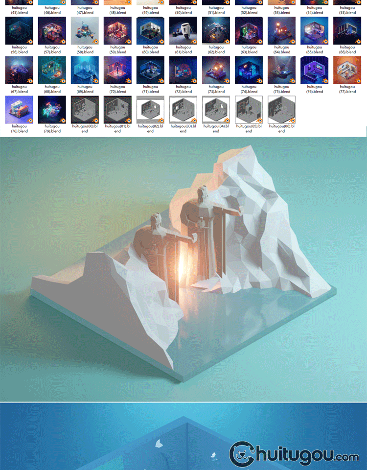 103套Blender低面卡通微缩场景房间岛屿自然建筑科幻极地3D模型