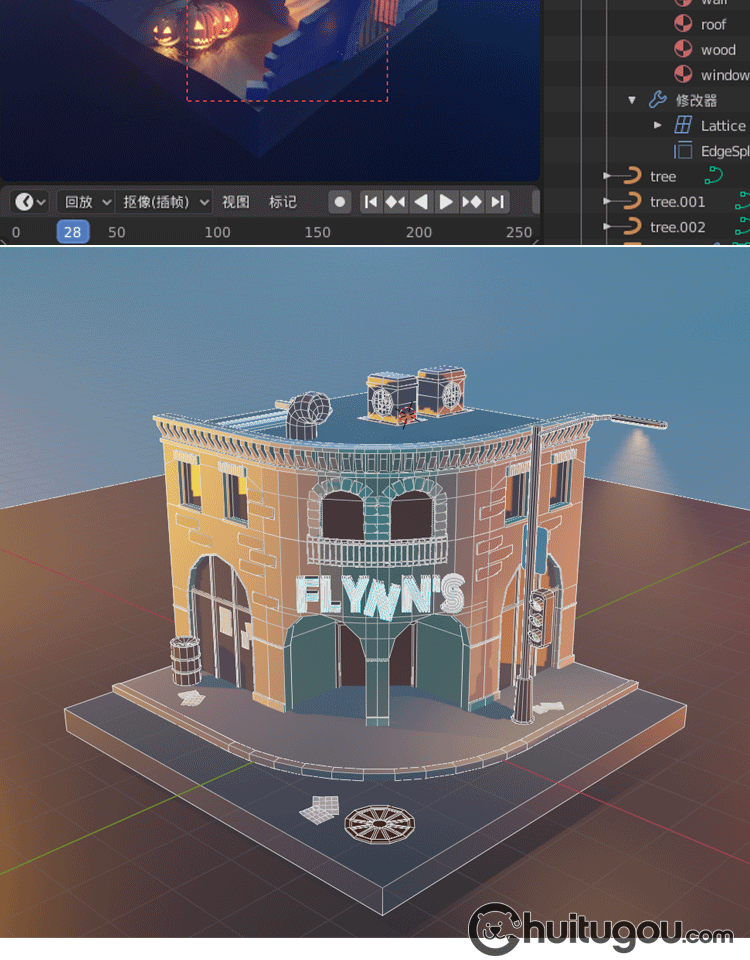 低面LOWPOLY万圣节资产blend棺材坟墓C4D树干max fbx obj 3d素材