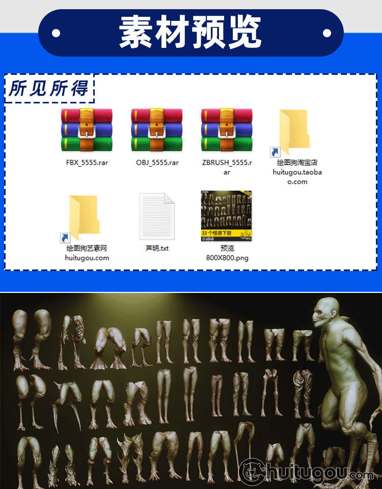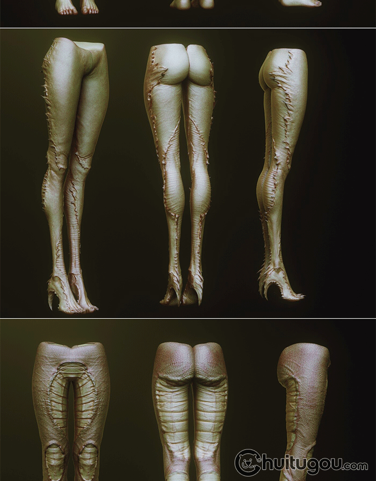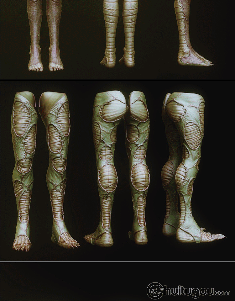 ZBrush科幻生物人物怪物怪兽腿下肢IMM笔刷ztl模型FBX格式OBJ雕刻