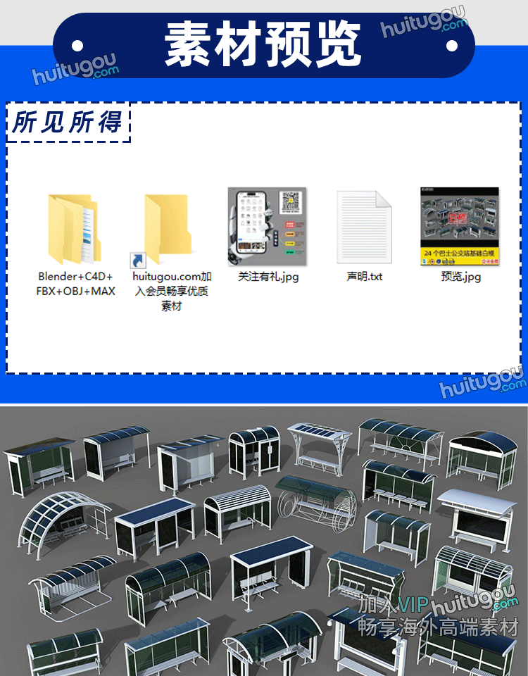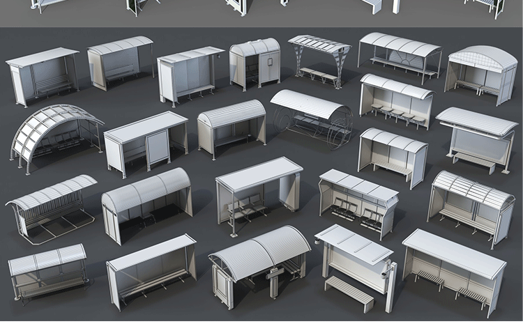 24个巴士公交站公交亭基础白模3D建模渲染素材FBX格式OBJ模型MAX