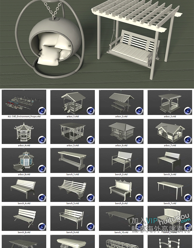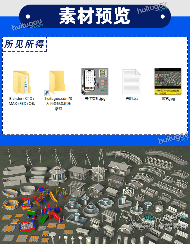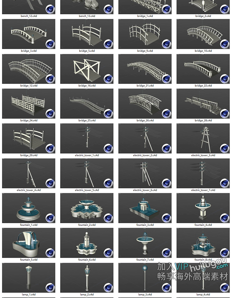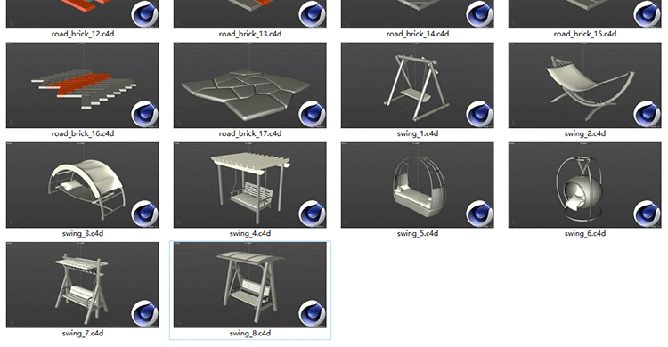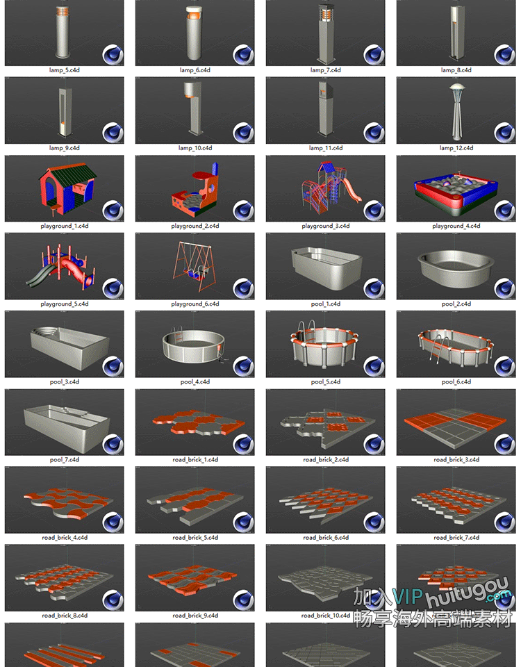 101个户外公园广场公共设施模块3D模型C4D素材Blender白模FBX OBJ
