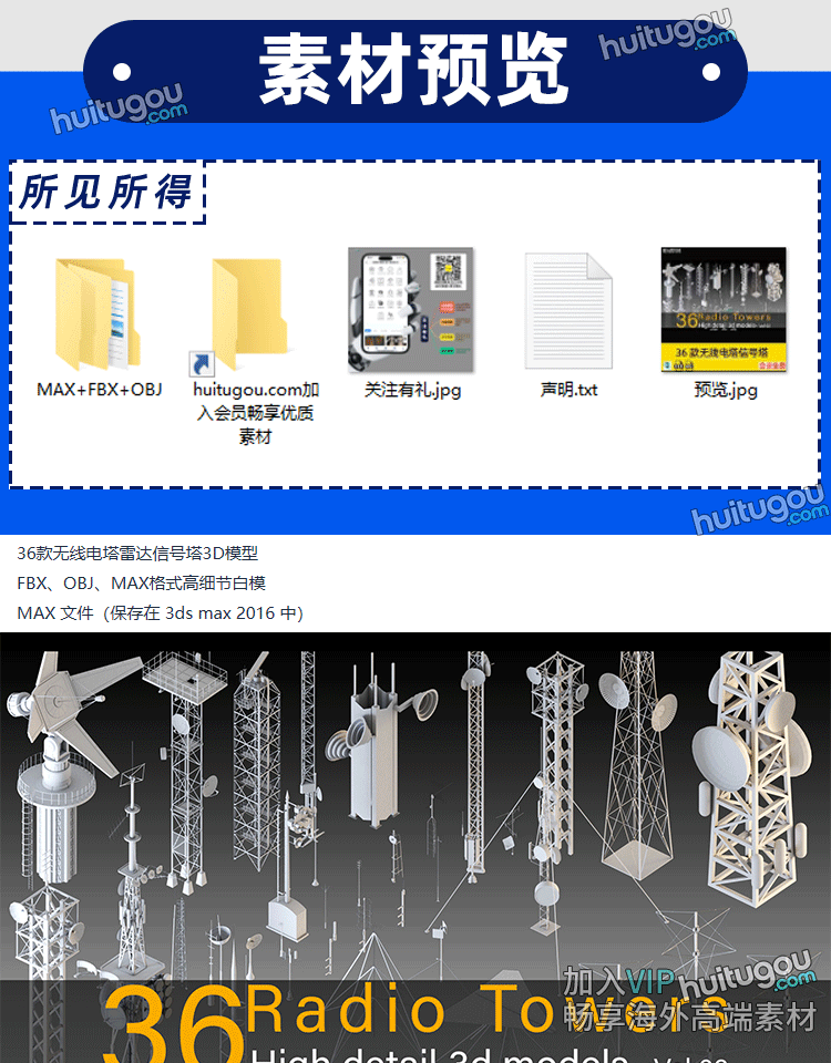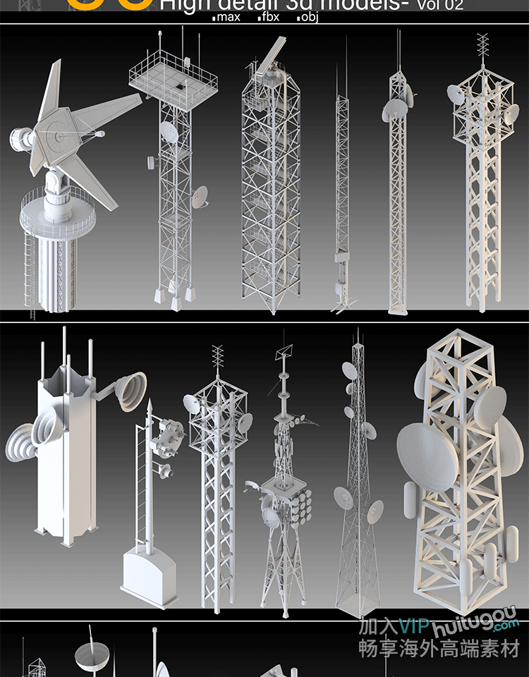 36款3dsMAX无线电塔信号塔天线通讯塔信号接收塔3D模型FBX素材OBJ