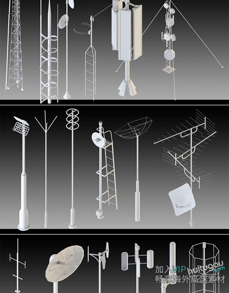 20款 天线模型Blend讯号塔信号接受器发射器卫星信号塔C4D素材OBJ