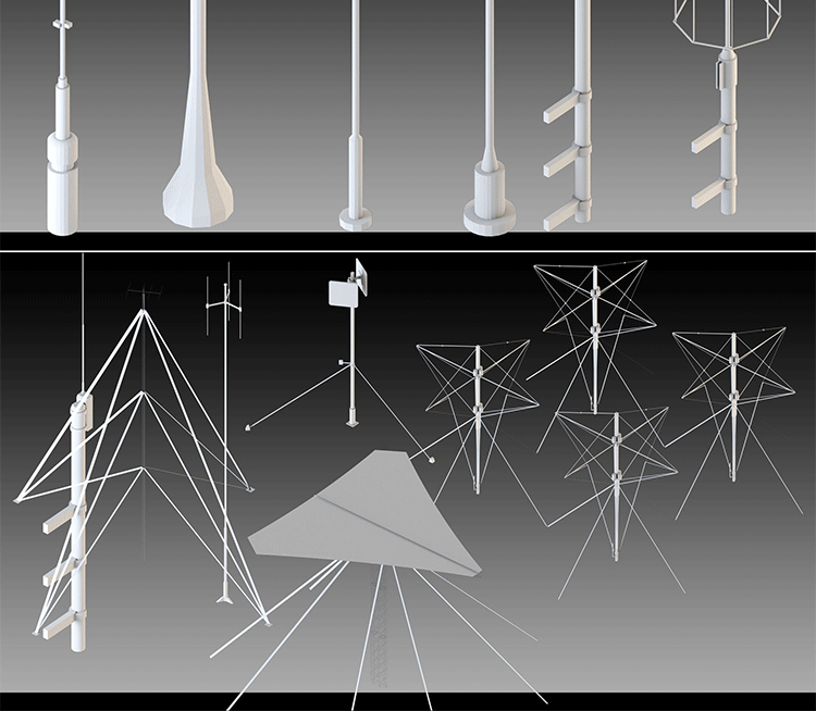 20款雷达信号塔电信通讯塔白模Blender模型C4D建模渲染FBX素材OBJ