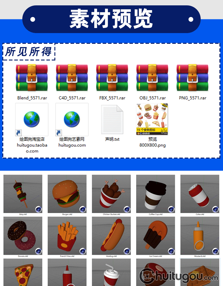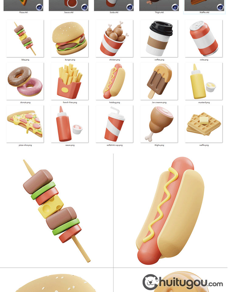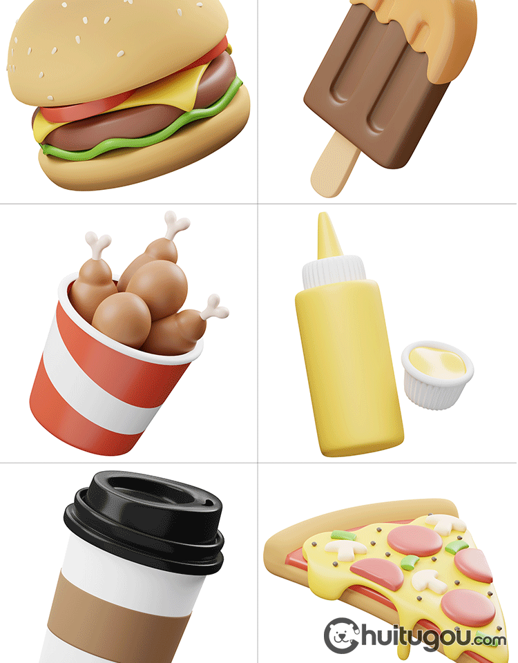 快餐食物C4D模型 汉堡披萨热狗饮料3D模型fbx素材obj png免扣图标