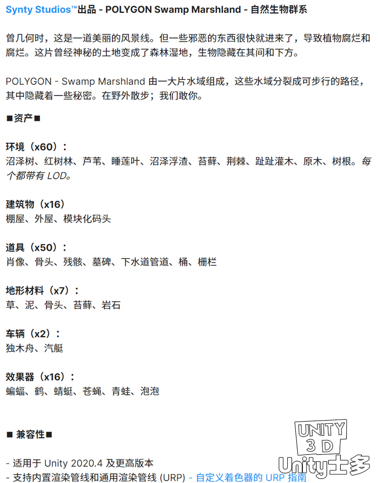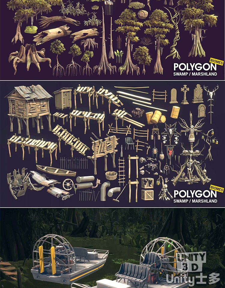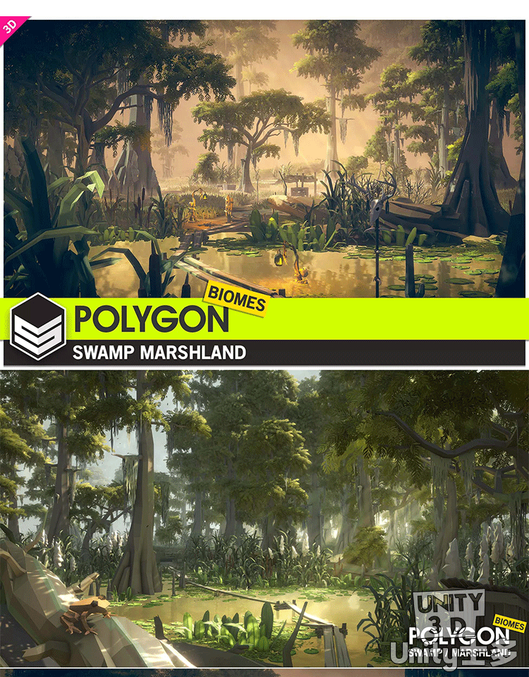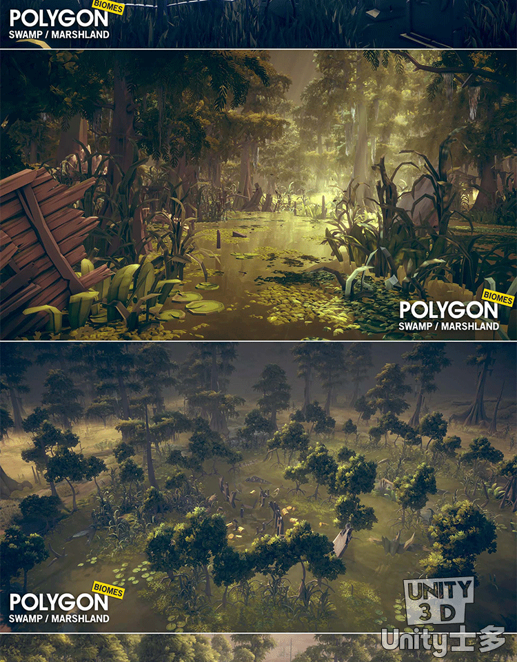 Unity3D自然湿地红树林沼泽场景水生植物POLYGON Swamp Marshland