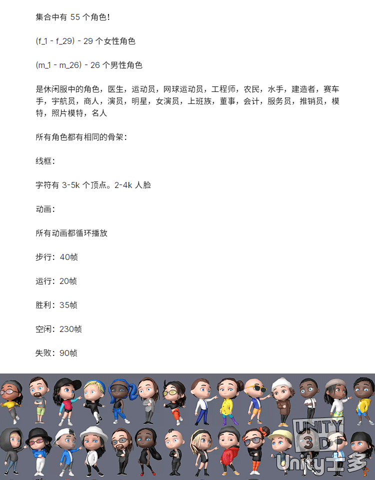 Unity卡通男女休闲人物动画角色U3DLow Poly Characters 2 05 1.0