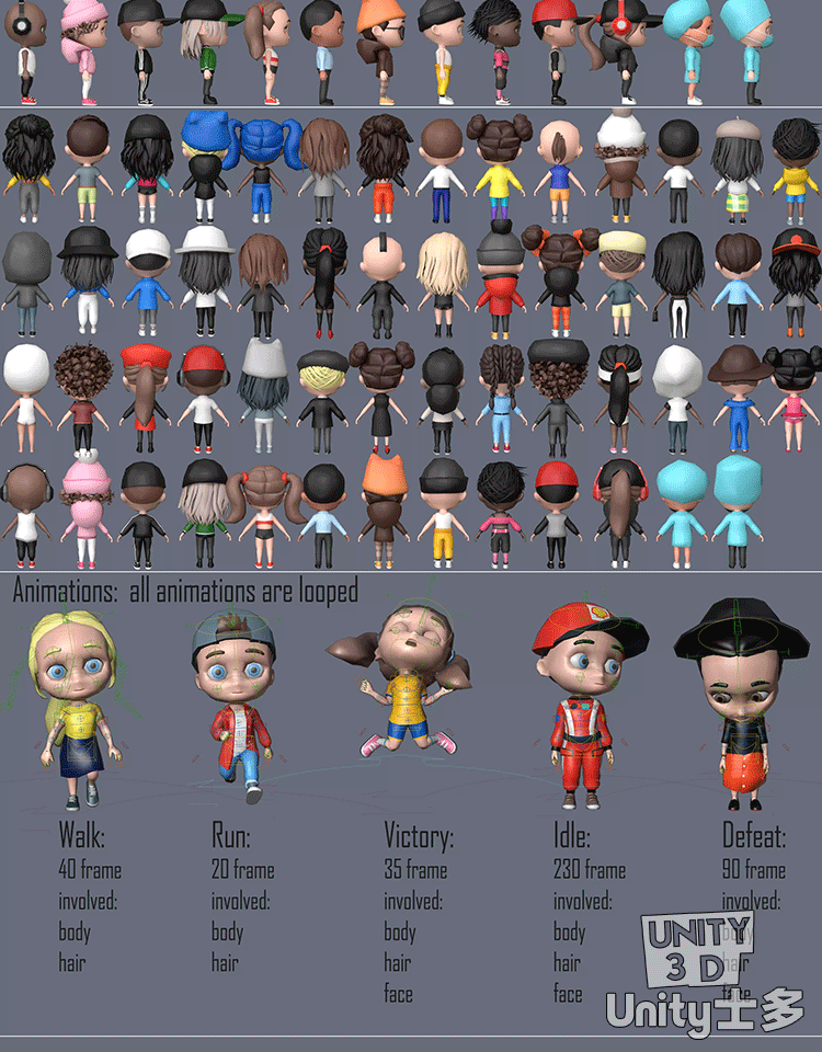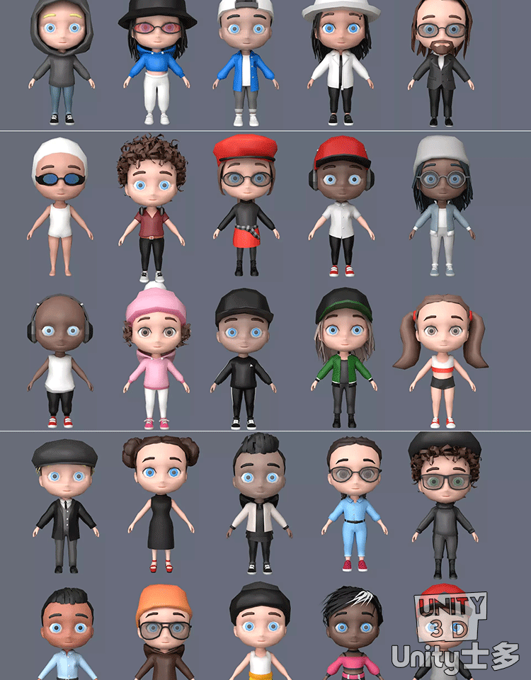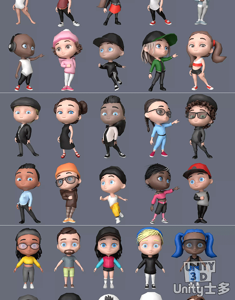 Unity卡通Q版可爱动画男女人物角色包Unity Characters 6 05 V1.0