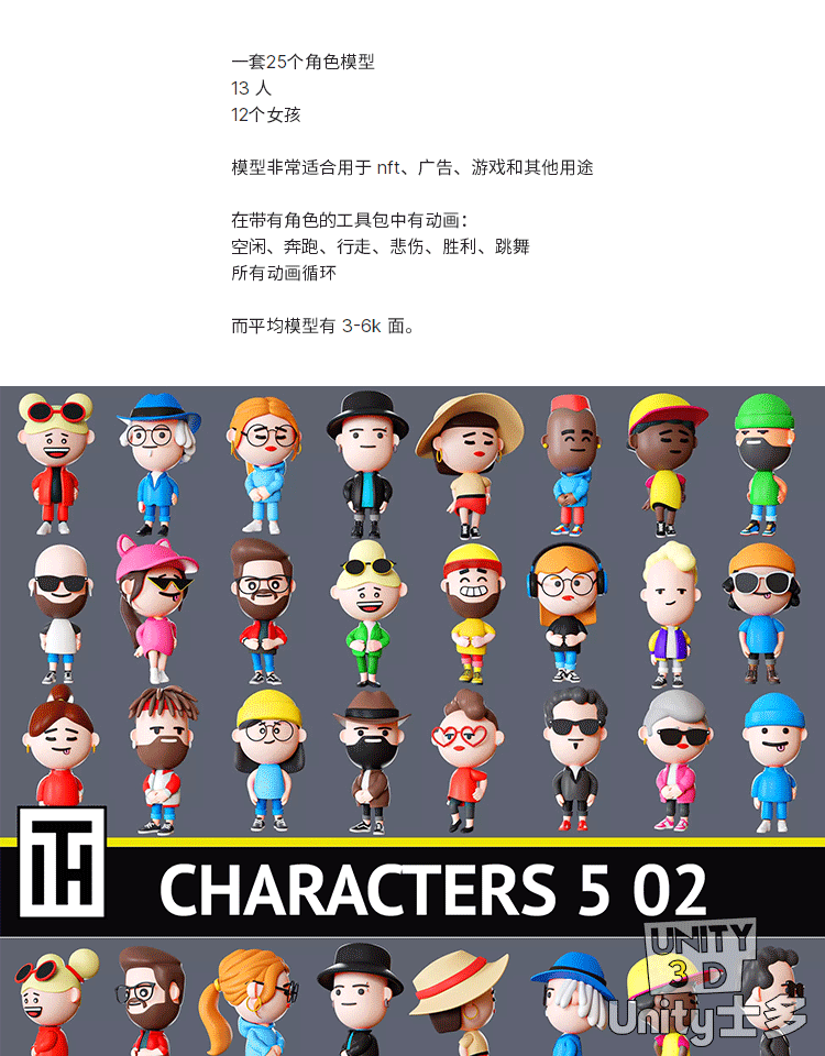 Unity卡通男女休闲人物动画角色U3DLow Poly Characters 2 05 1.0