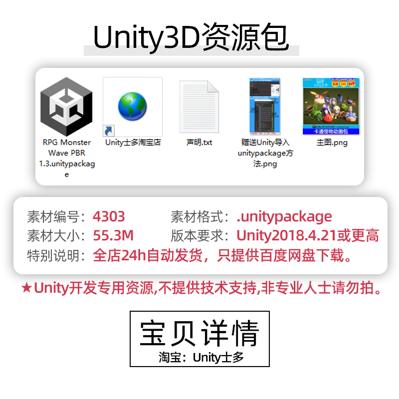 Unity低面卡通可爱精灵怪物骷髅带动画RPG Monster Wave PBR 1.3