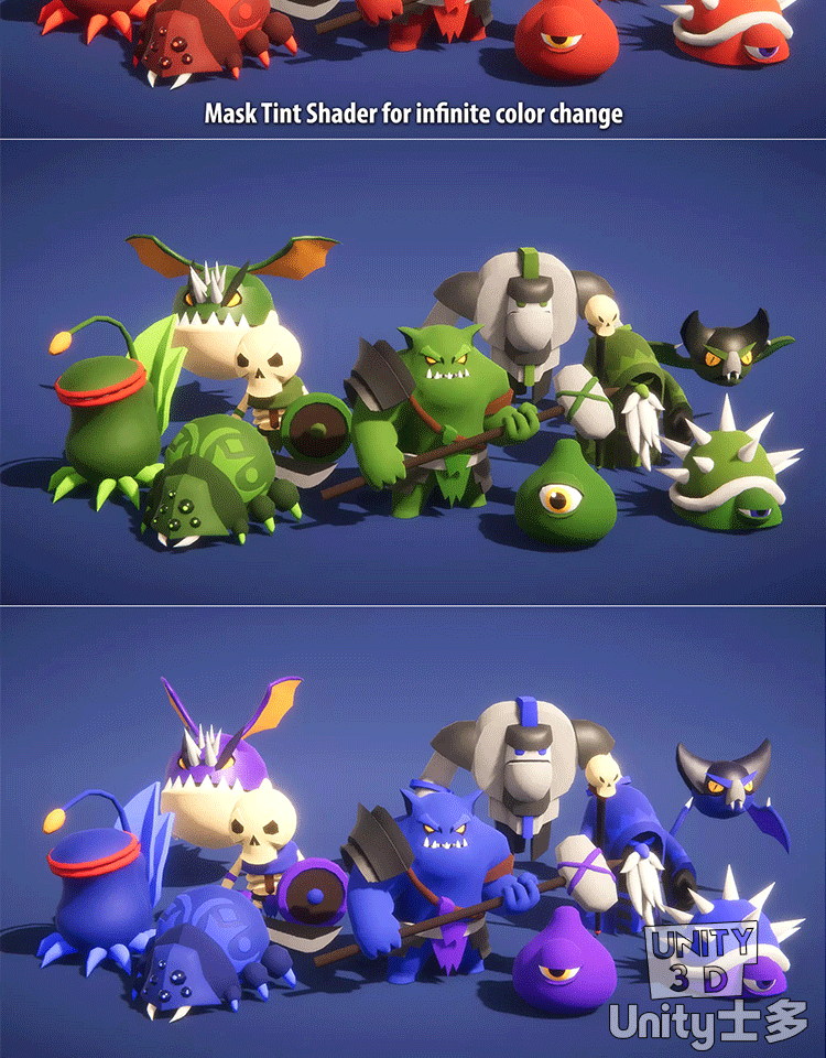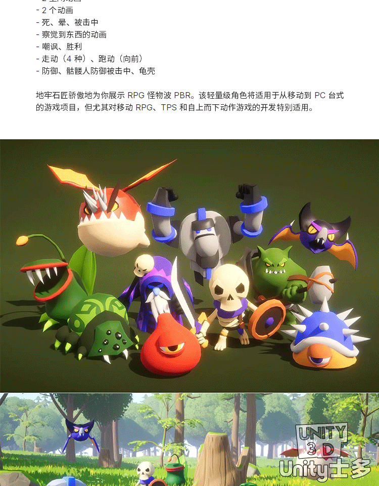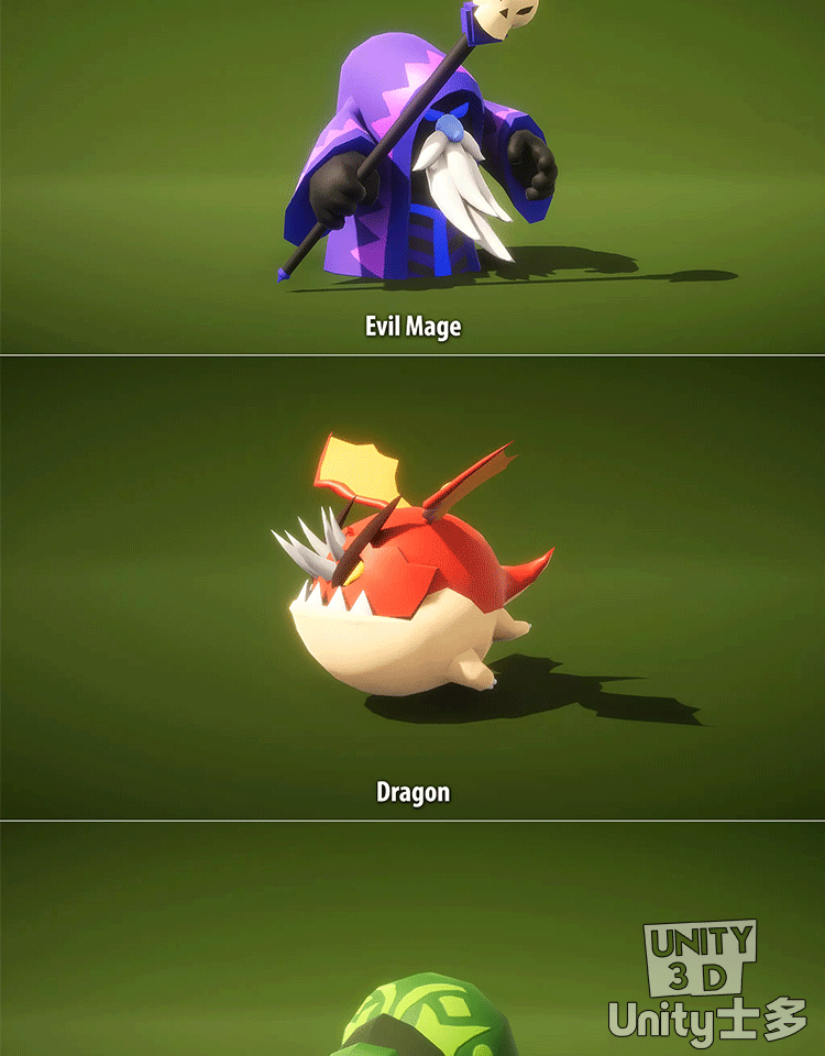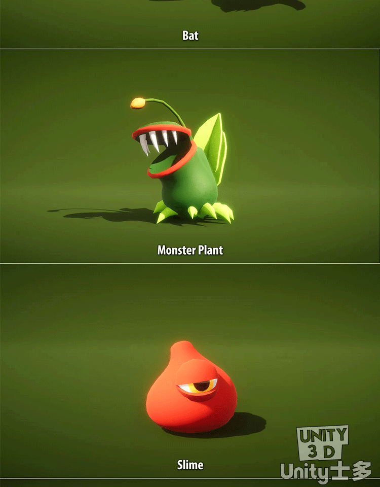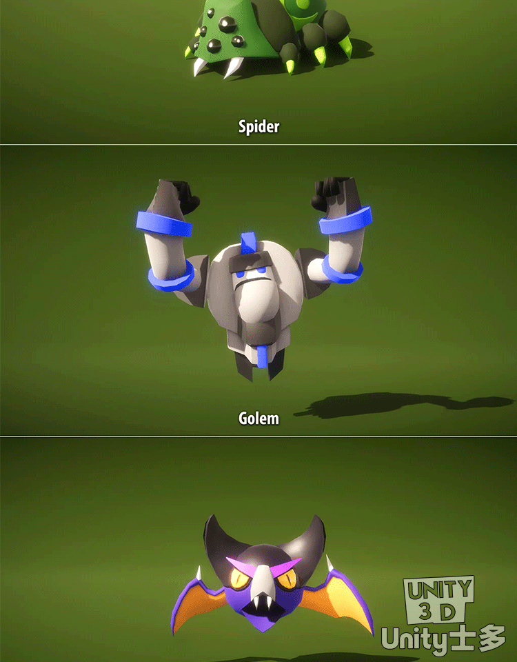 Unity3D低面卡通怪物模型带动画U3D风格化lowpoly游戏角色Monster