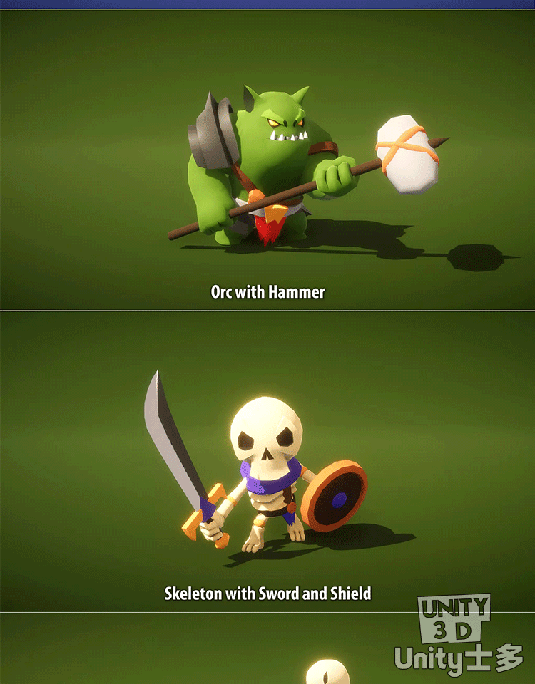 Unity3D卡通士兵战士角色带动画U3D模型Modular RPG Hero PBR 1.6