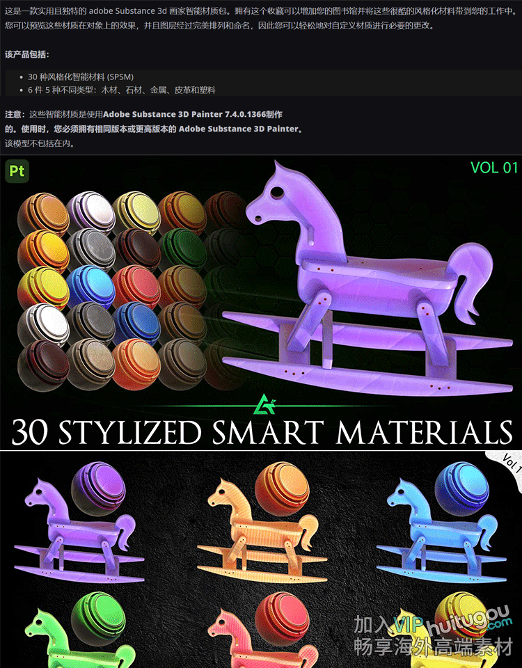 SP风格化智能材质球spsm木材石材金属皮革塑料材质Substance素材