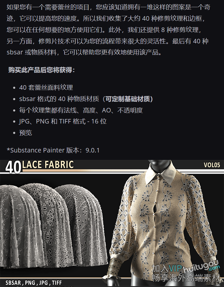 40款substance painter/SP/Pt蕾丝布料材质球sbsar素材带jpg贴图