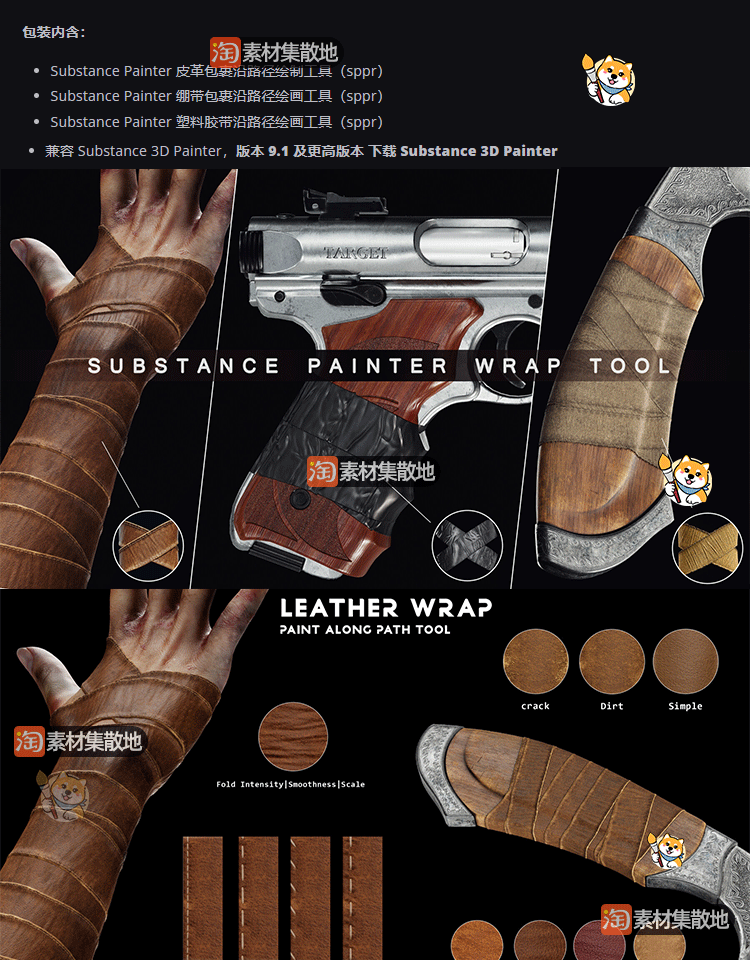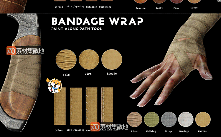 SP/Pt材质SPPR格式皮革绷带塑料胶带绘制工具substance素材