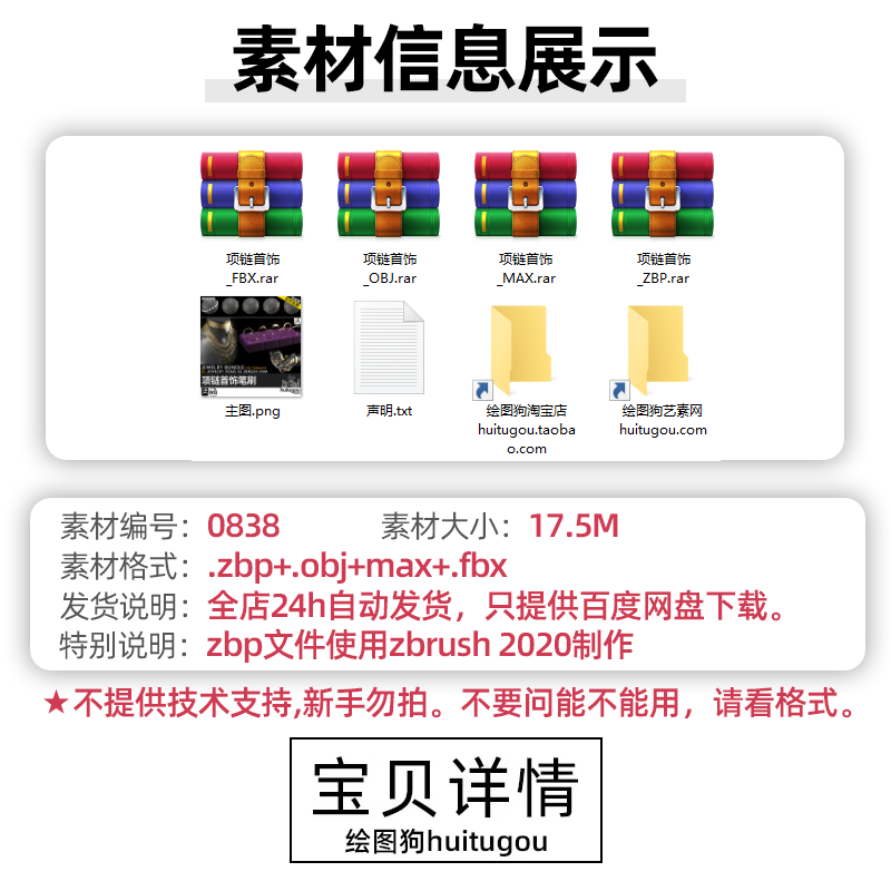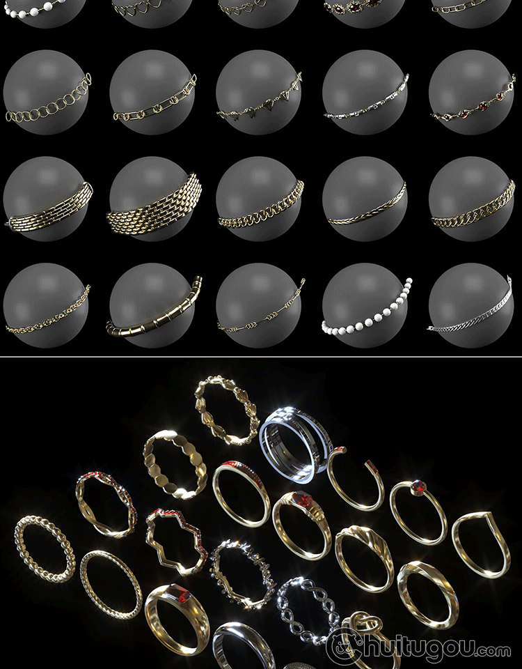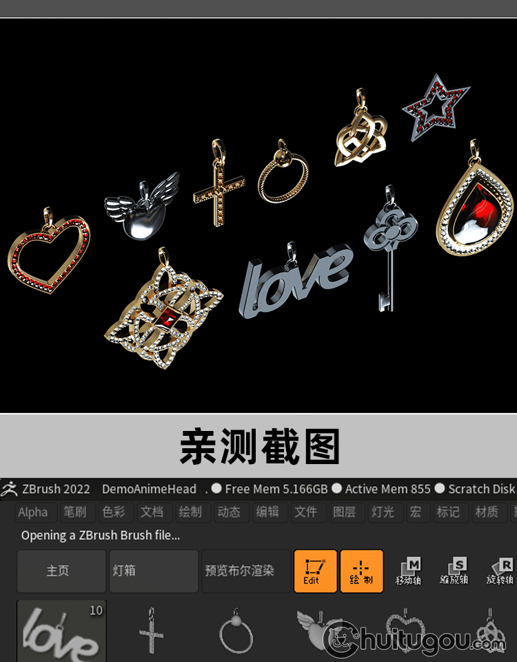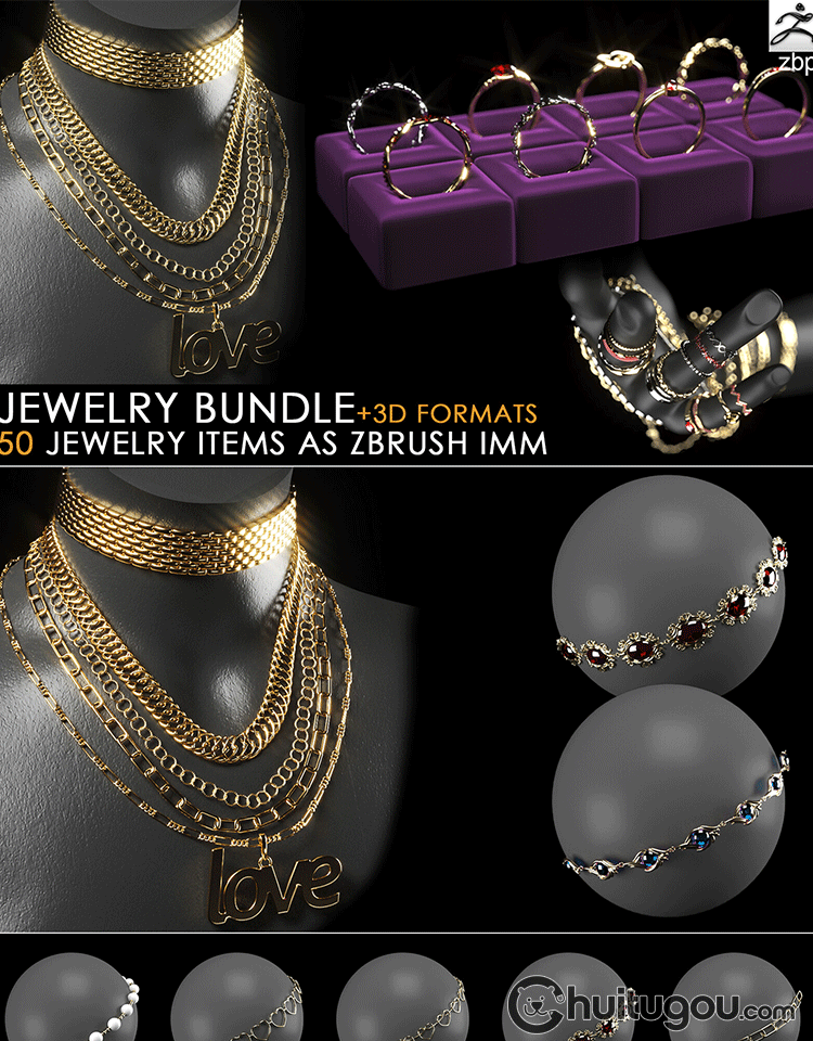 Zbrush戒指钻戒手链项链子吊坠首饰IMM笔刷ZB画笔obj fbx max模型