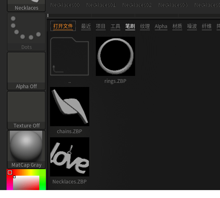 Zbrush珠宝项链首饰IMM曲线笔刷ZB画笔zbp手链珍珠铃铛珠子雕刻