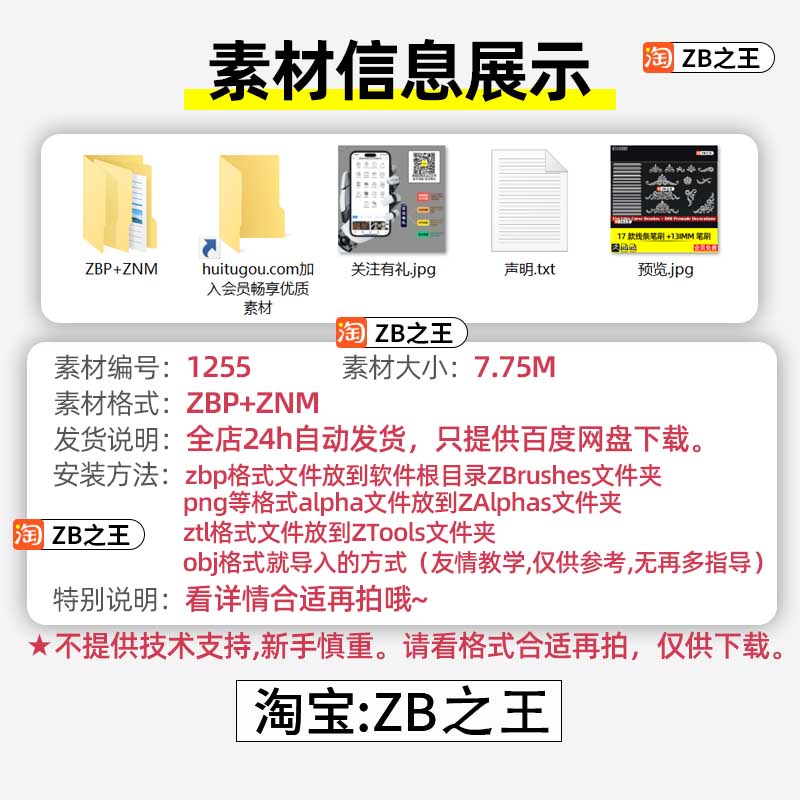 ZBrush素材120款拉链ZBP笔刷IMM曲线刷带OBJ模型3D建模ZB雕刻素材