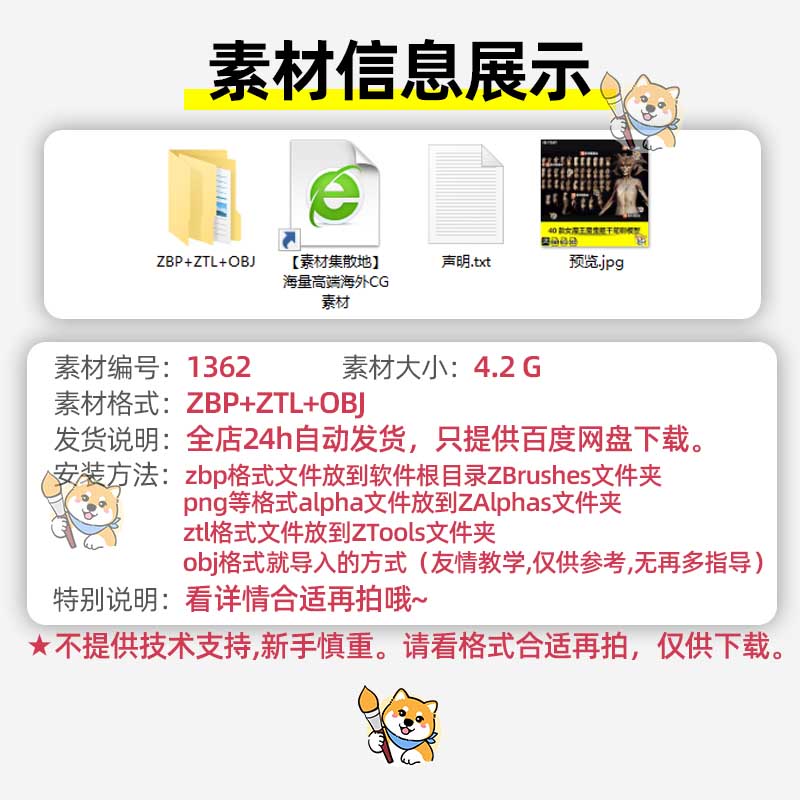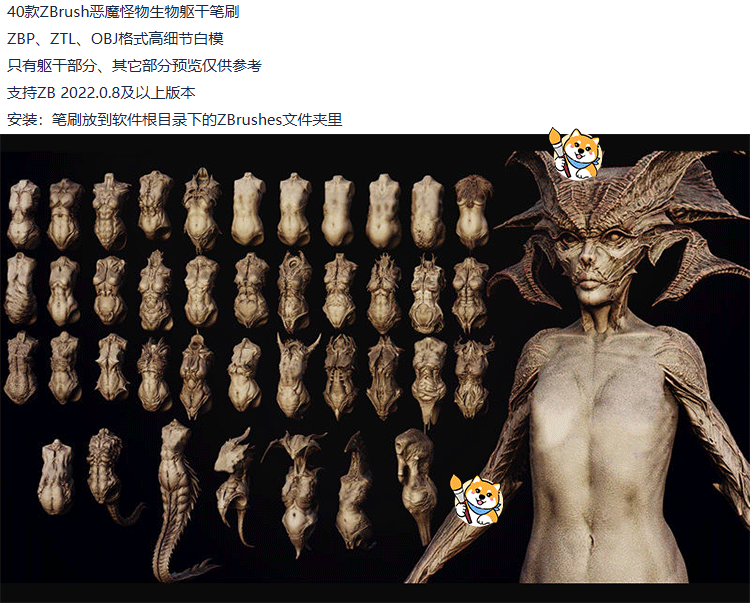 ZBrush笔刷40款女魔王魔鬼躯干ZBP笔刷3d模型ZTL工程OBJ素材