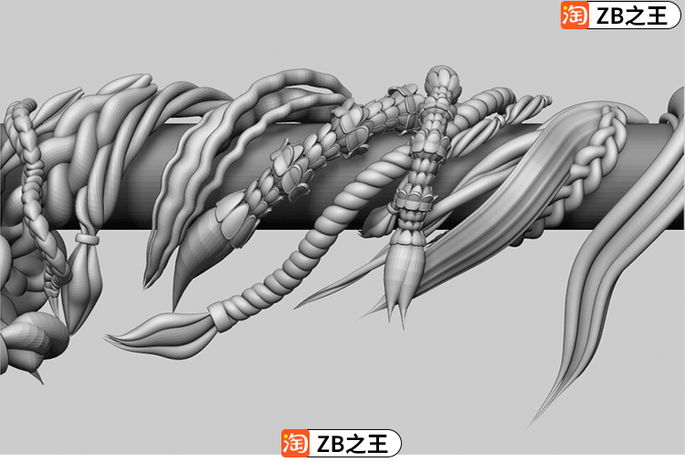 ZBrush素材4款风格化人物人类头发毛发长发发束ZBP笔刷ZB雕刻建模