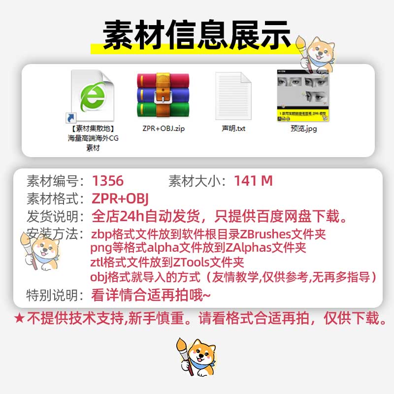 ZBrush笔刷16款毛皮动物毛发IMM笔刷ZBP格式ZB建模雕刻素材带OBJ