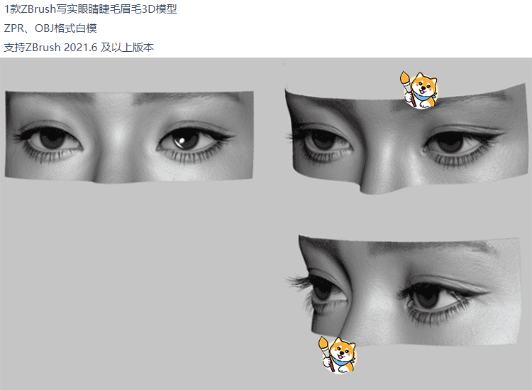 ZBrush模型1款写实眼睛睫毛眉毛ZPR格式3D素材OBJ