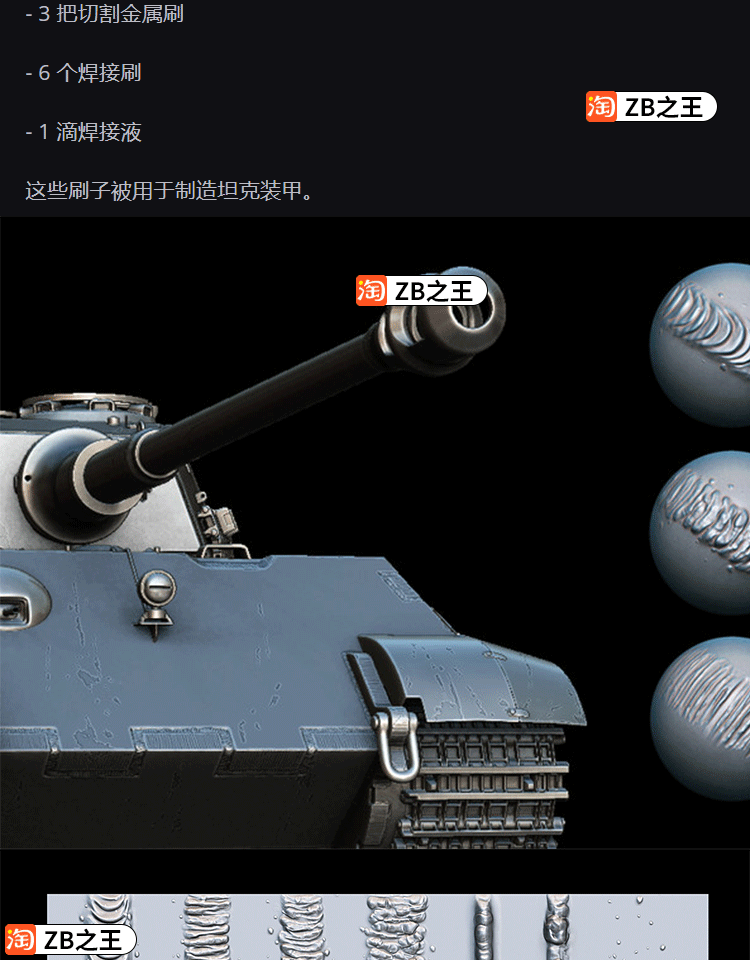 ZBrush笔刷素材10款坦克装甲金属切割焊接zbp笔刷ZB雕刻铁质机械