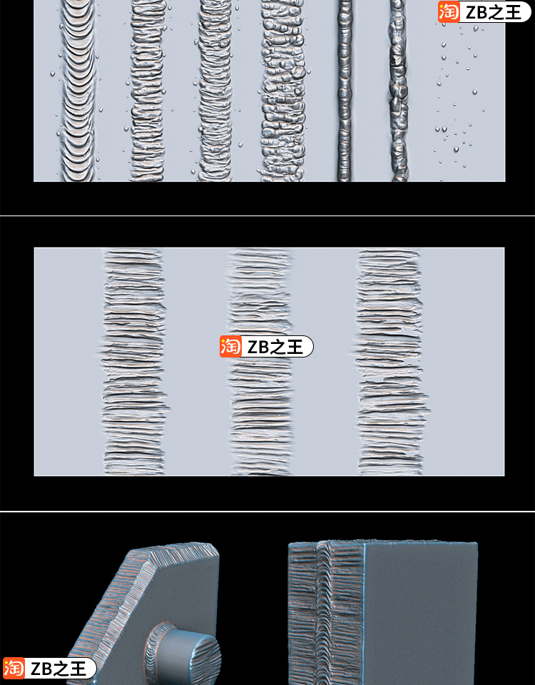ZBrush笔刷素材10款金属锤纹凹凸补丁做旧ZBP笔刷ZB铁质水桶雕刻