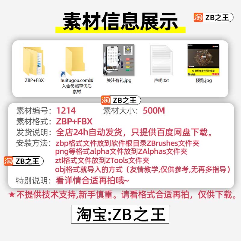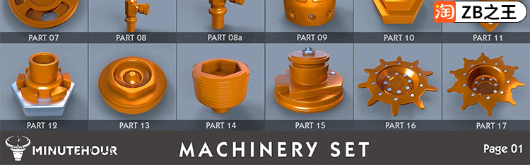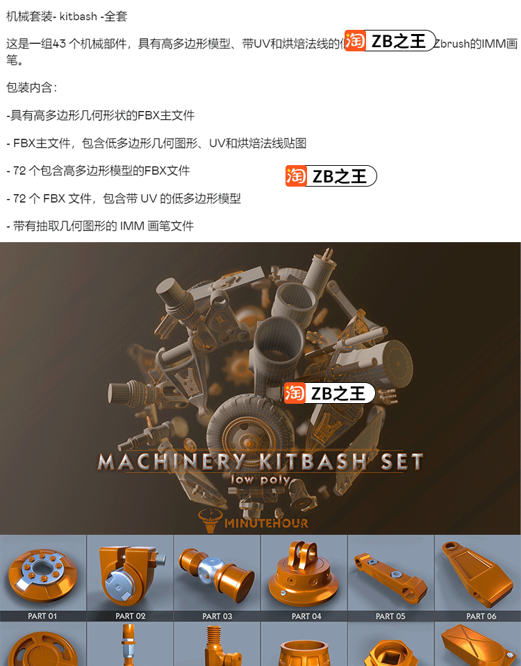 ZBrush素材72款机械零件ZBP笔刷FBX模型3D建模雕刻素材文件