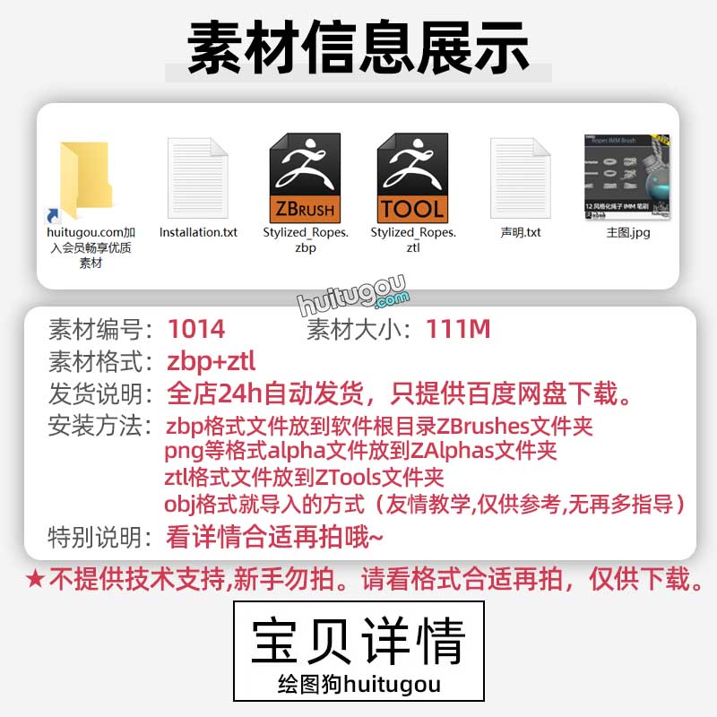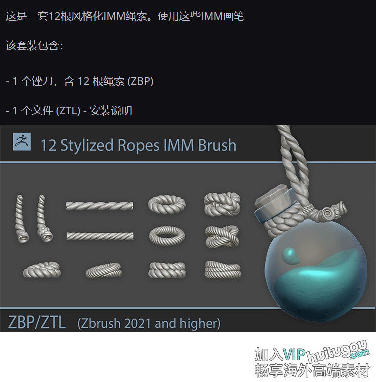 ZBrush绳索绳结绳子IMM笔刷zbp画笔 ZTL模型 ZB麻绳建模雕刻素材