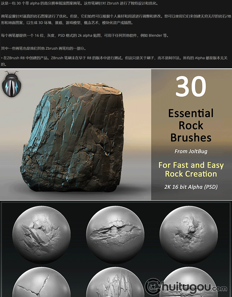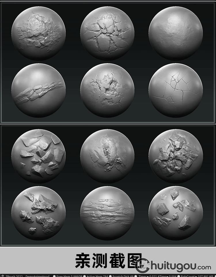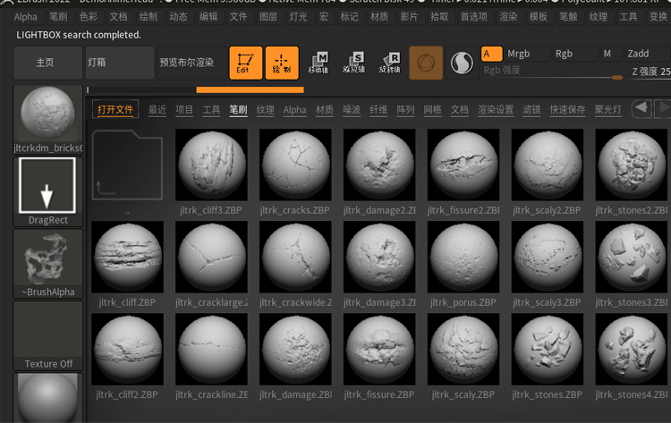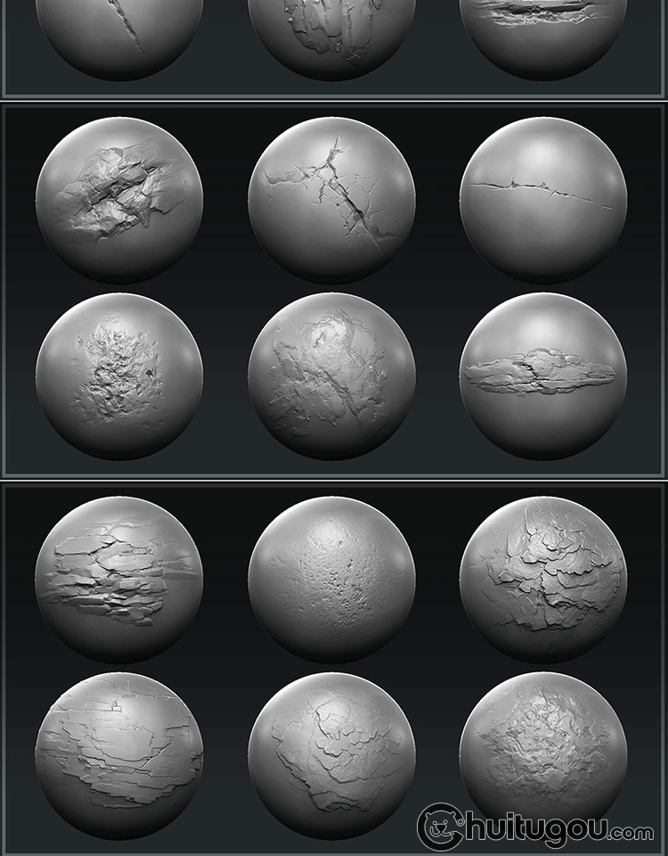Zbrush岩石表面细节裂缝风化zbp笔刷alpha贴图纹理 ZB雕刻Blender