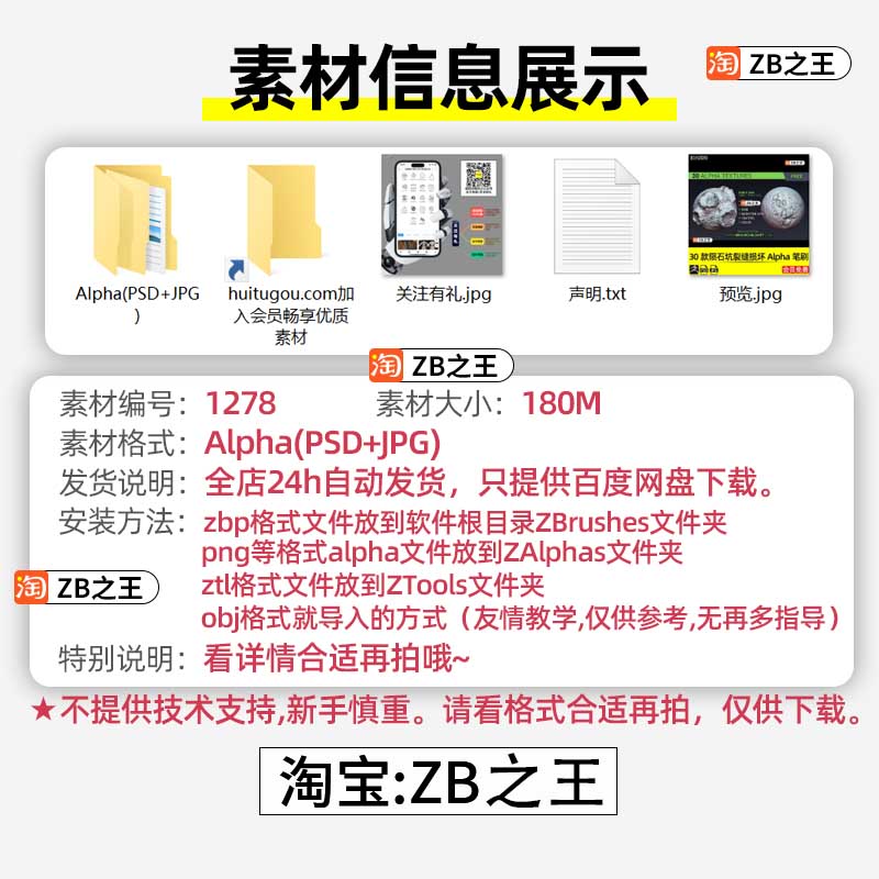 ZBrush素材30款黏土陶土模仿手工泥塑ZBP笔刷Alpha纹理ZB雕刻建模