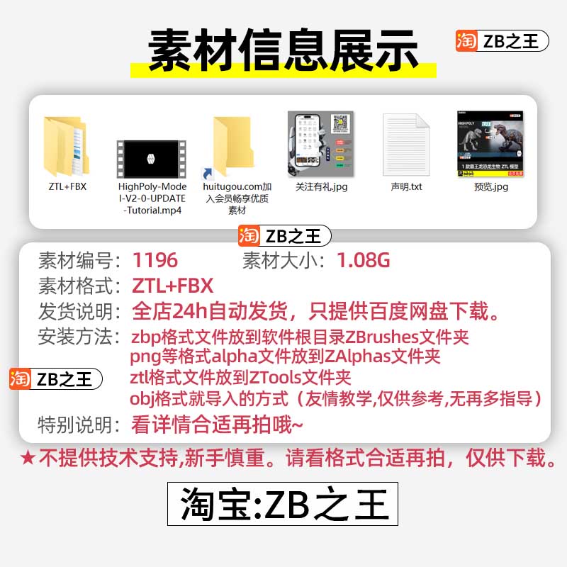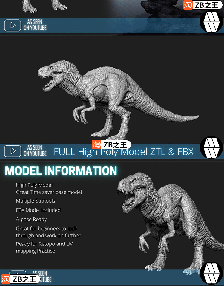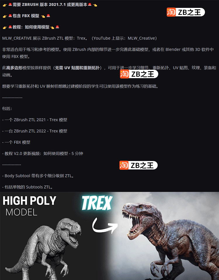 ZBrush模型1款霸王龙恐龙生物ZTL模型ZB建模雕刻3D素材FBX格式