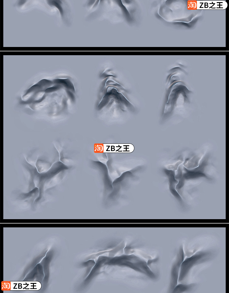 ZBrush笔刷ZB雕刻石头7款风格化石头Alpha笔刷PSD格式阿尔法纹理