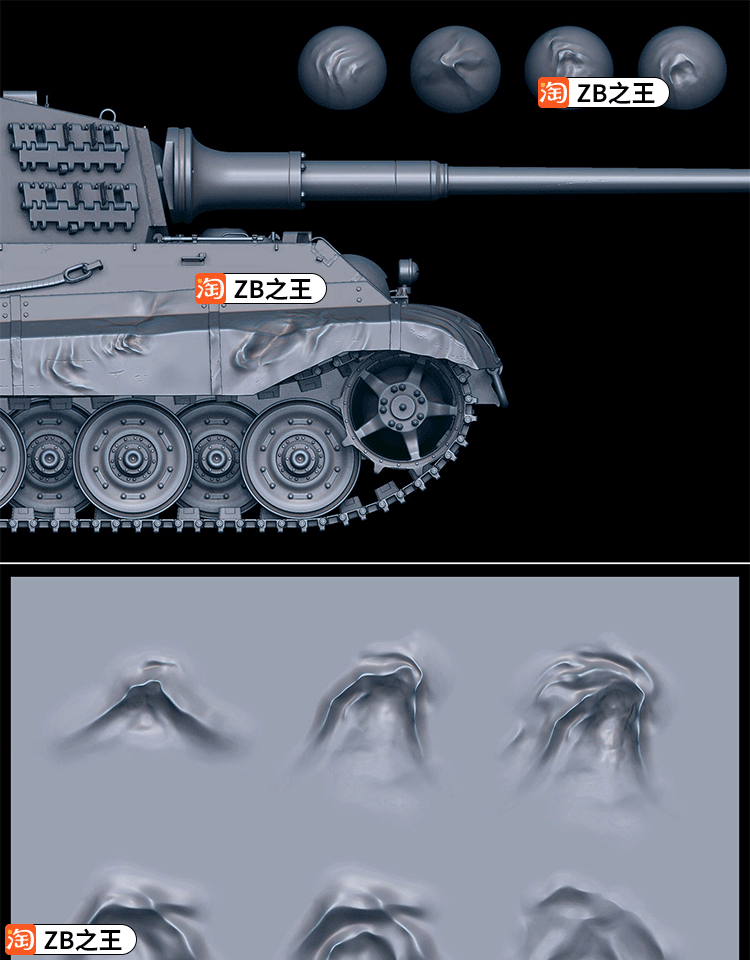 ZBrush笔刷ZB雕刻金属撞击破损27款坦克凹痕VDM笔刷ZBP格式png