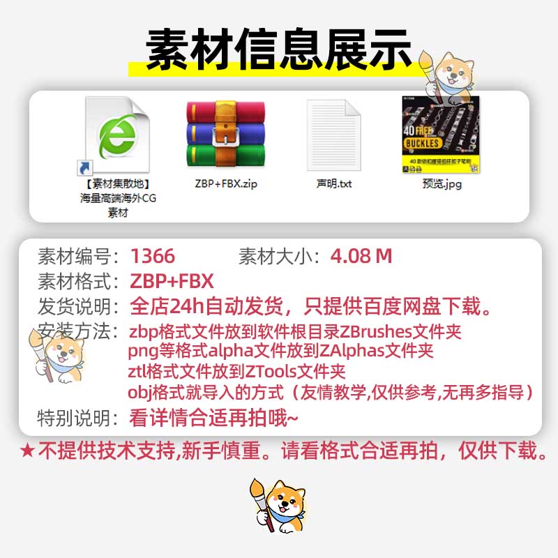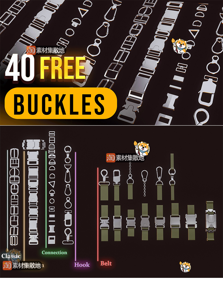 ZBrush笔刷40款锁扣腰带扣环扣子ZBP笔刷FBX模型ZB雕刻素材