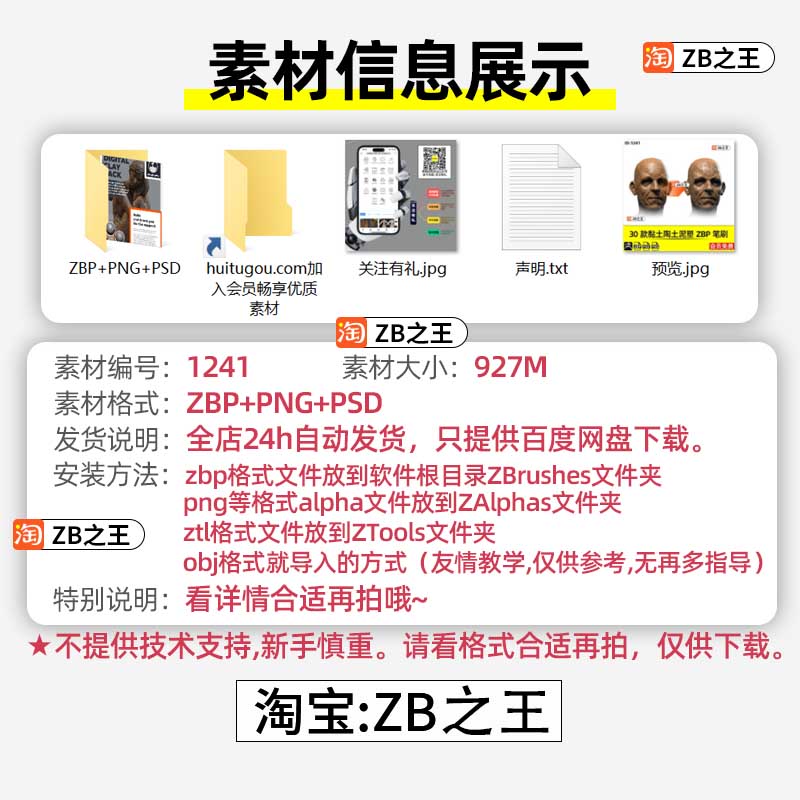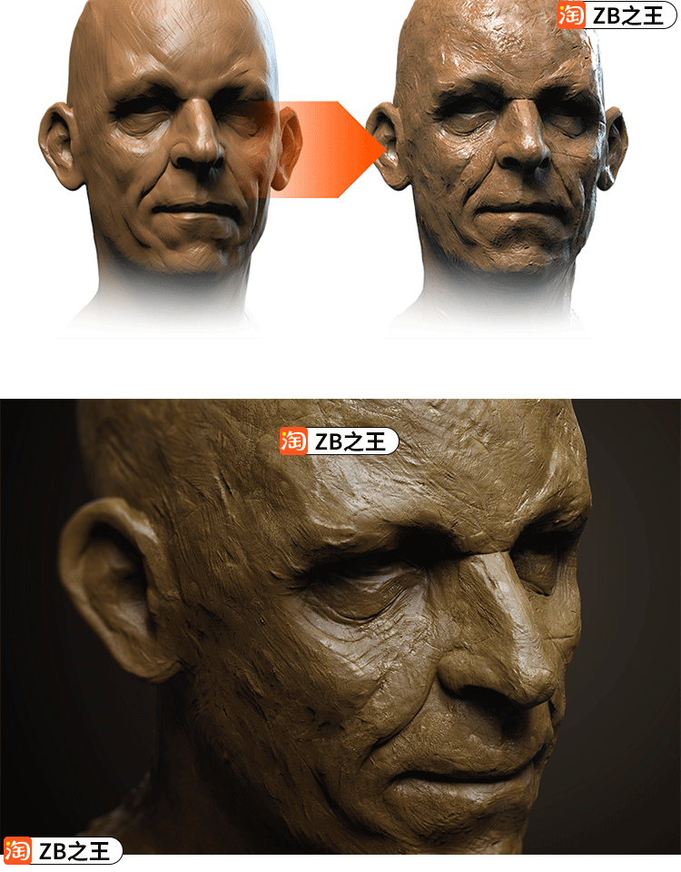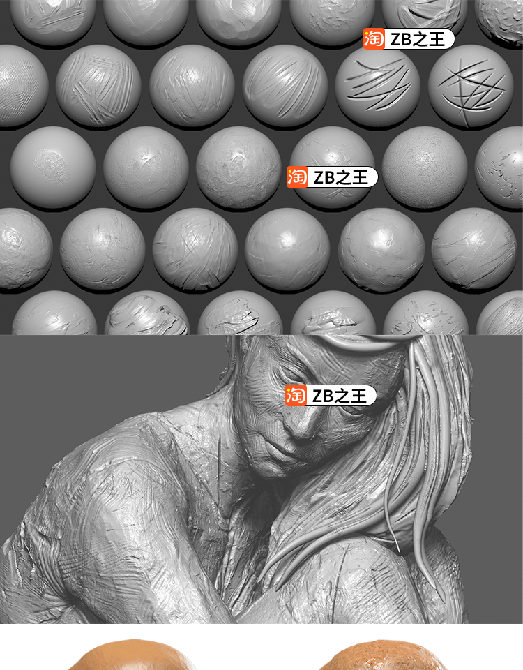 ZBrush素材30款黏土陶土模仿手工泥塑ZBP笔刷Alpha纹理ZB雕刻建模