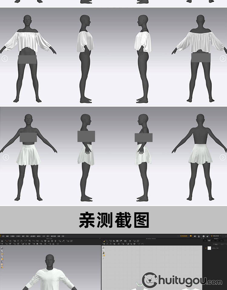 MD衣服纸样CLO3D女装裙子套装基础版型6款服装设计打版工程源文件
