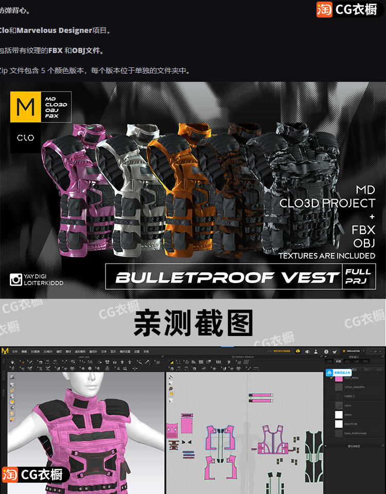 MD/CLO纸样模型5款士兵防弹衣防弹背心ZPRJ工程源文件3D素材OBJ