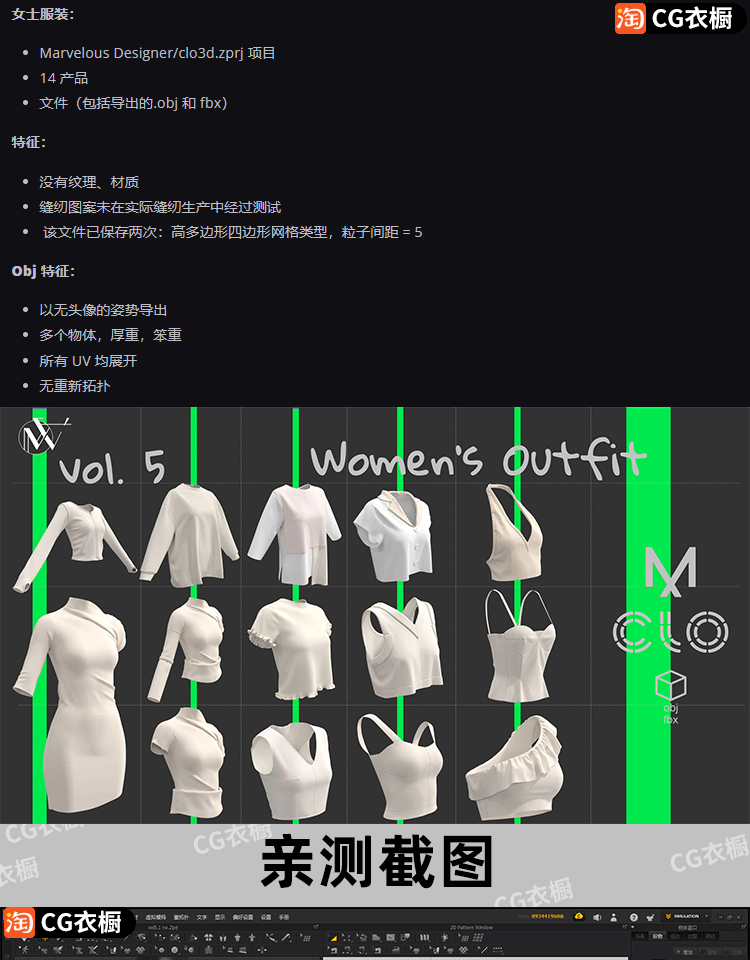 MD/CLO服装工程14款女装上衣基础版型ZPRJ衣服纸样3D模型OBJ素材