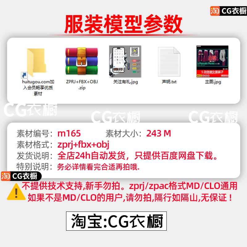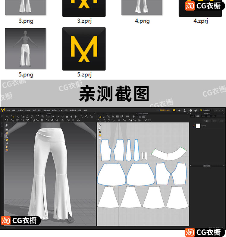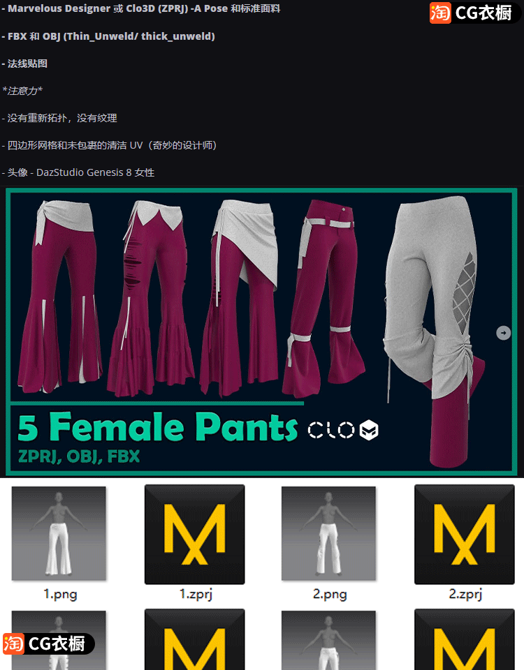 MD衣服模型5款微喇女装裤子紧身塑身运动裤CLO3D服装素材ZPRJ工程