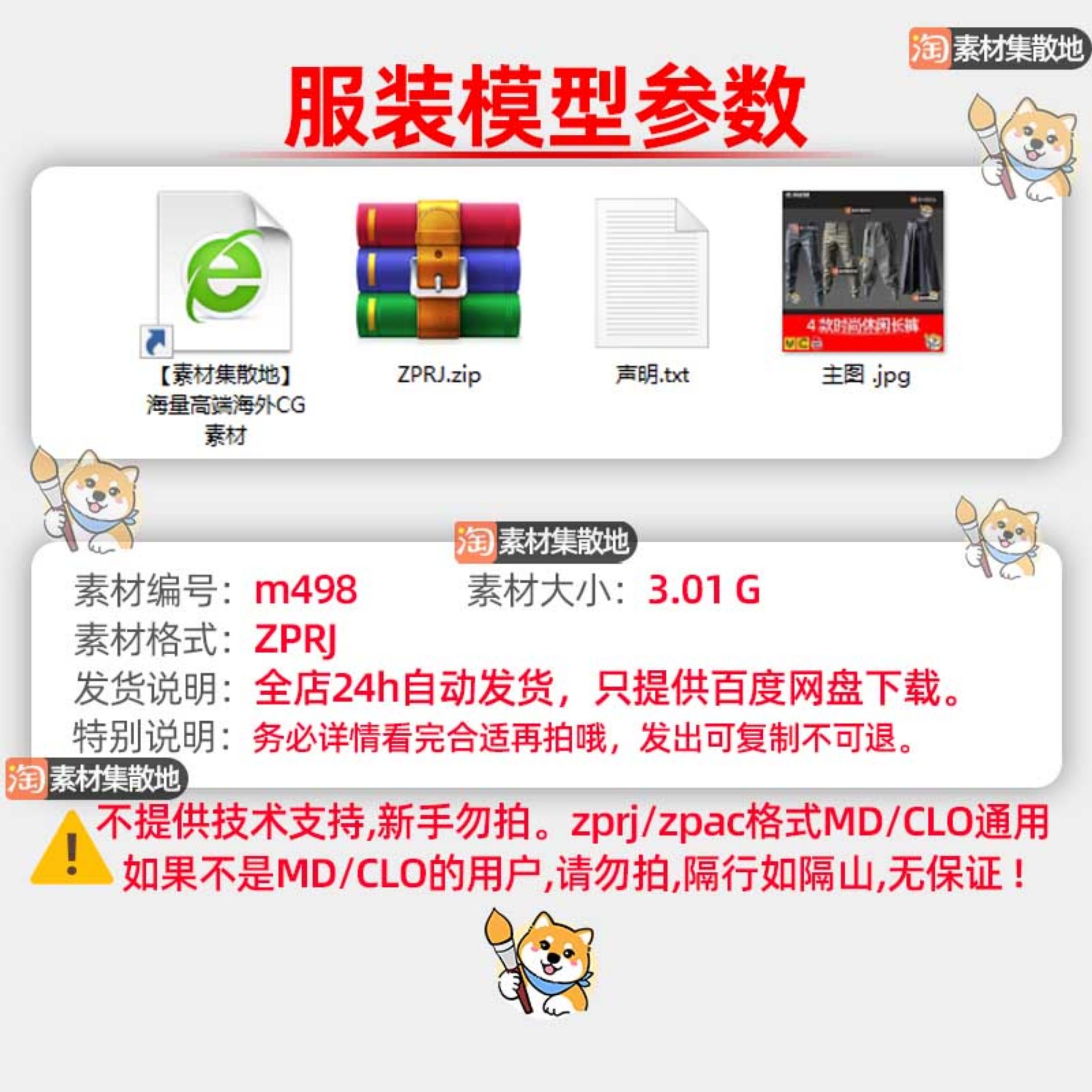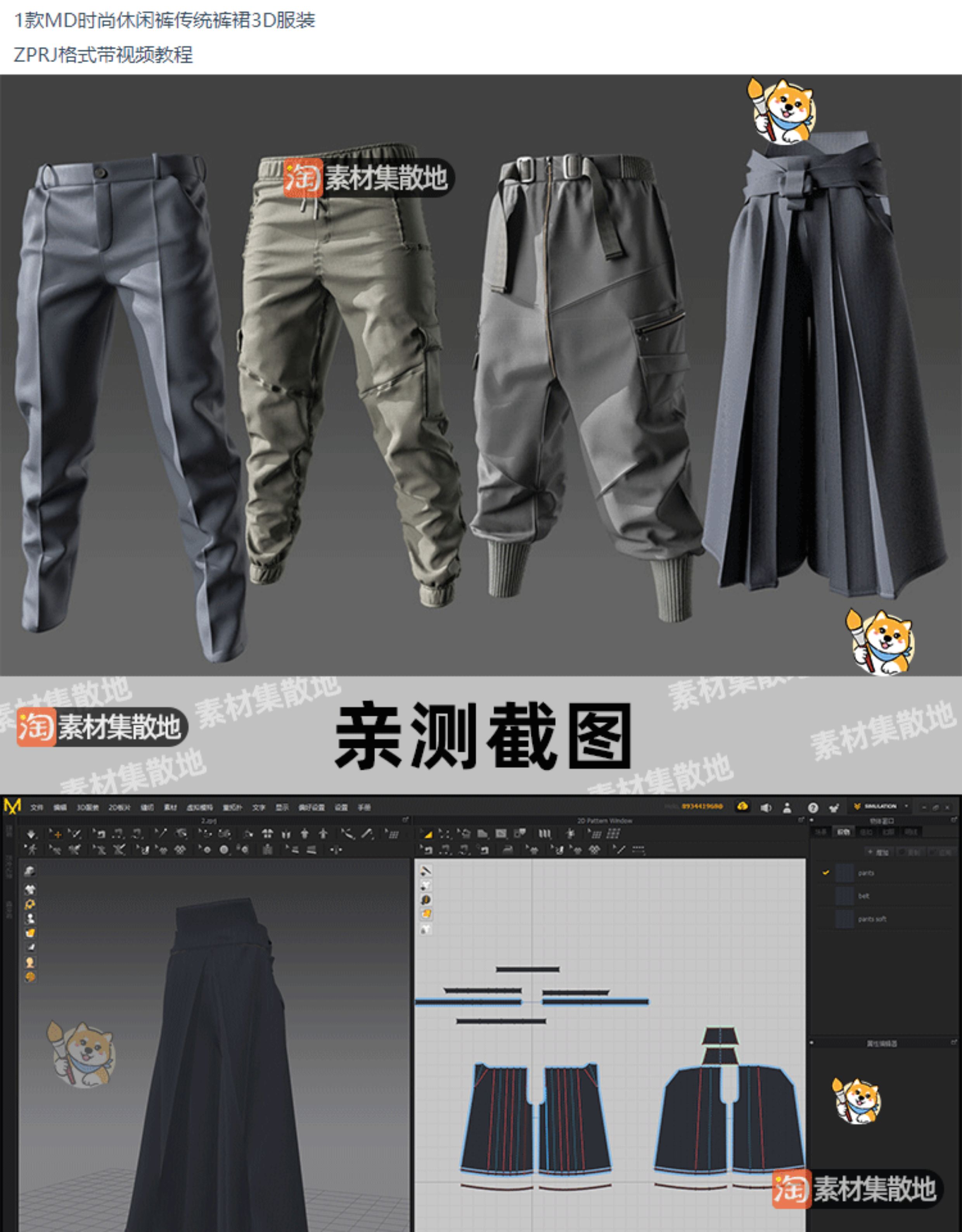 4款MD时尚休闲长裤服装CLO3D慢跑裤西裤传统裤裙ZPRJ模型打版文件