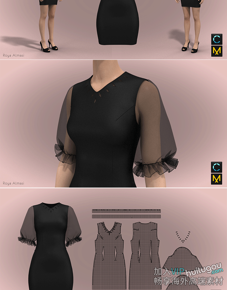 MD衣服素材CLO3D带面罩的修身连衣裙女装服装打版设计工程源文件