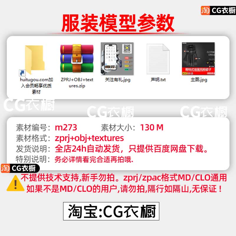 MD素材文件CLO3D男女服装模型6款ZPRJ服装打版纸样工程源文件OBJ