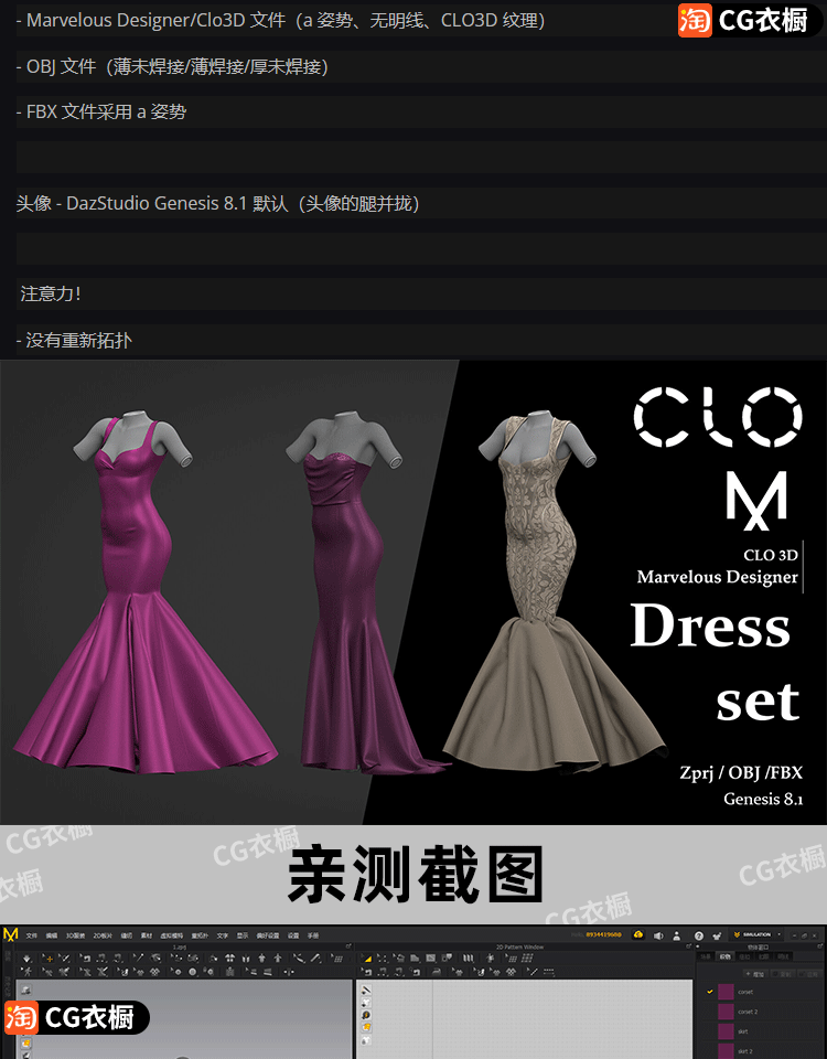 MD/CLO3D衣服素材宴会晚会礼服紧身连衣裙子服装纸样ZPRJ工程文件