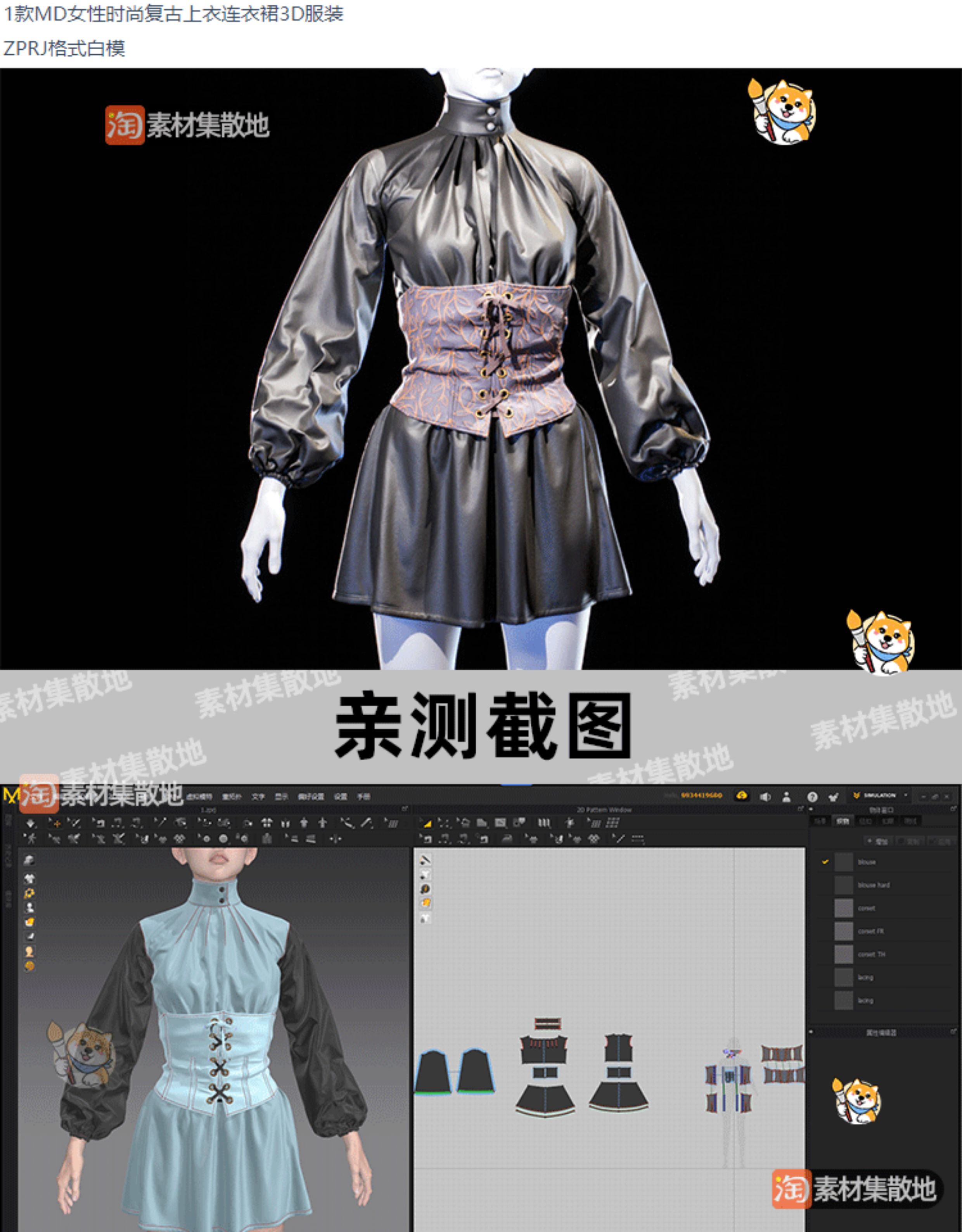 MD时尚连衣裙带视频教程CLO女性复古上衣外套3D服装ZPRJ模型素材
