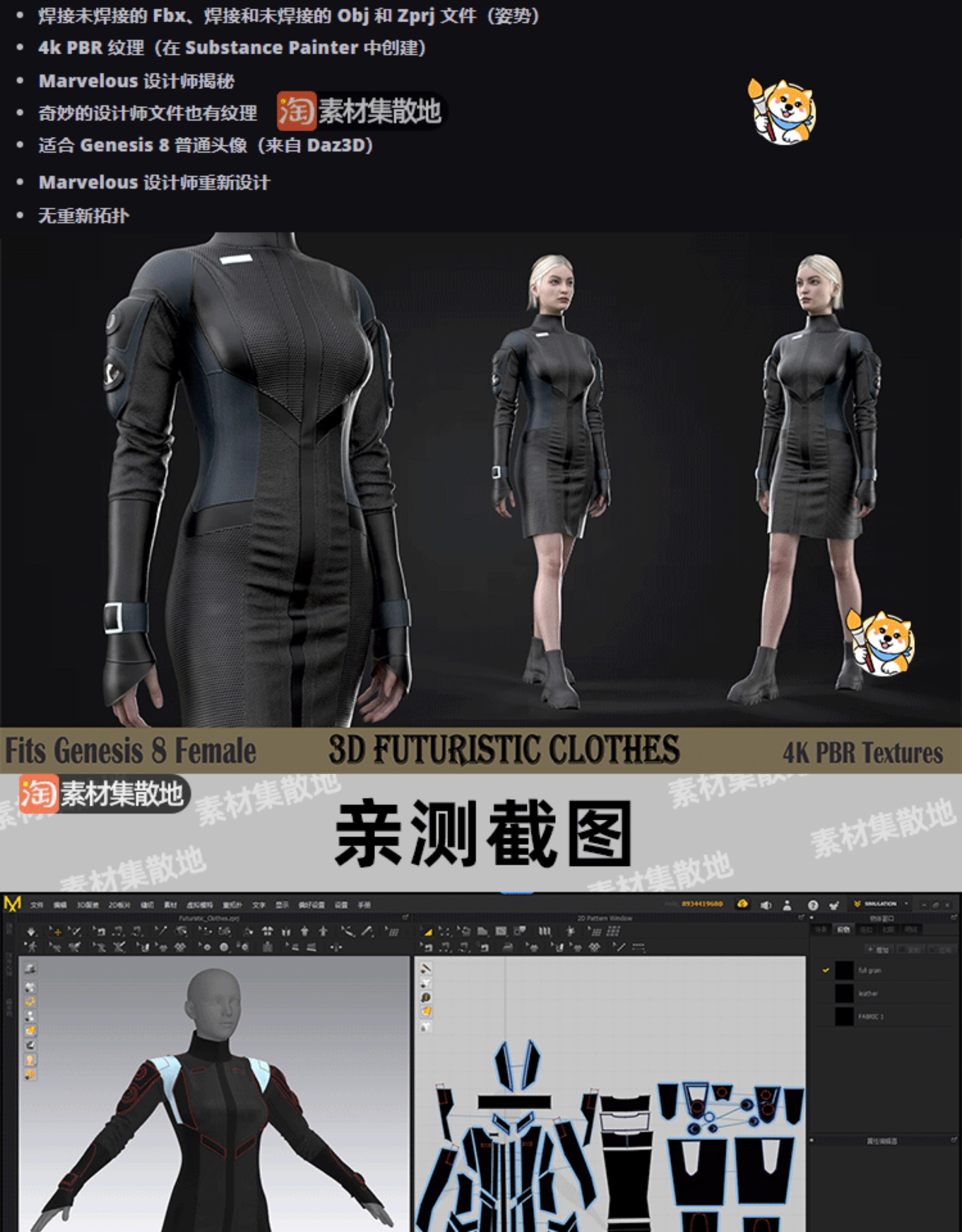 clo3d科幻包臀连衣裙服装未来派女性连体衣制服ZPRJ模型打版文件