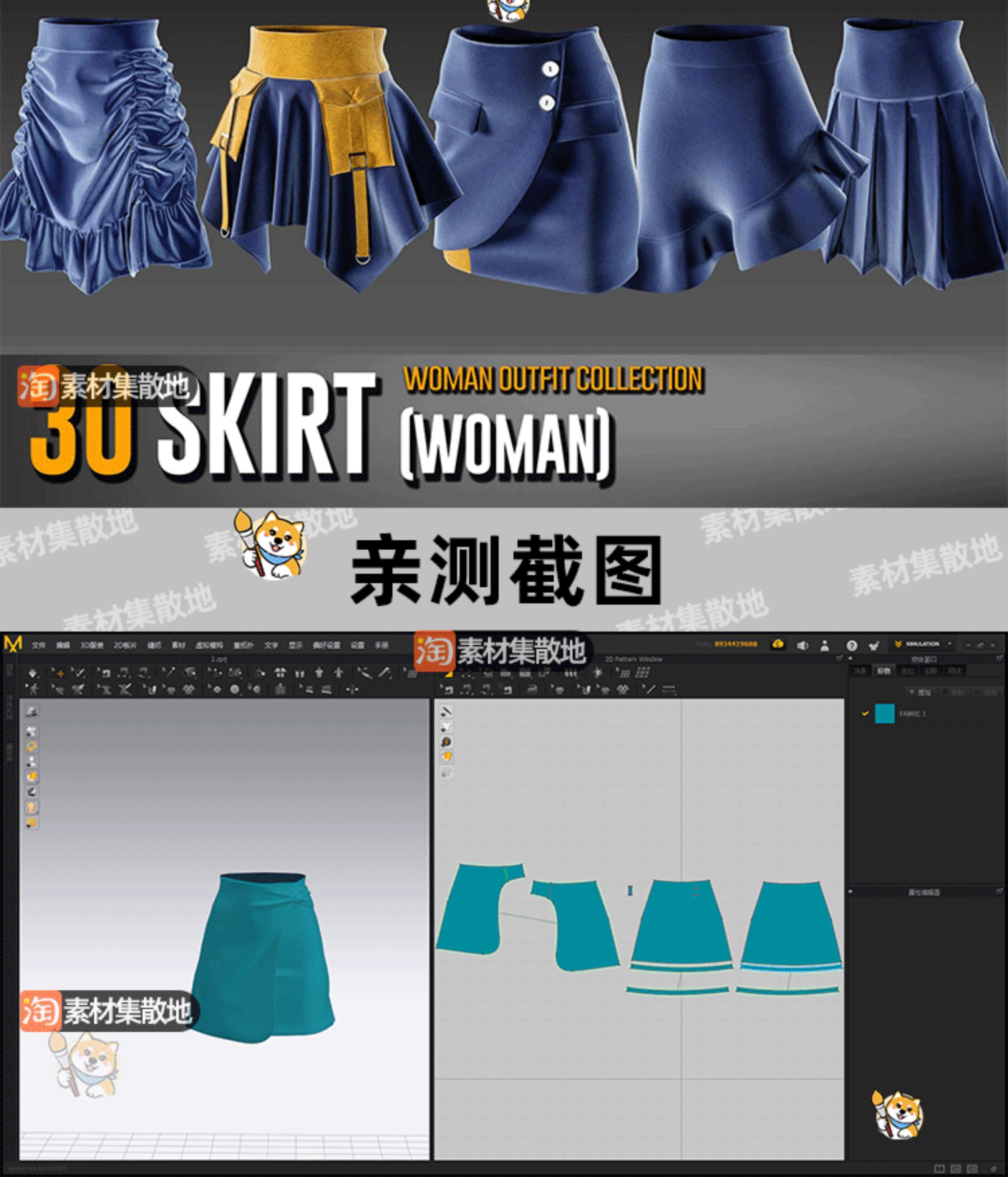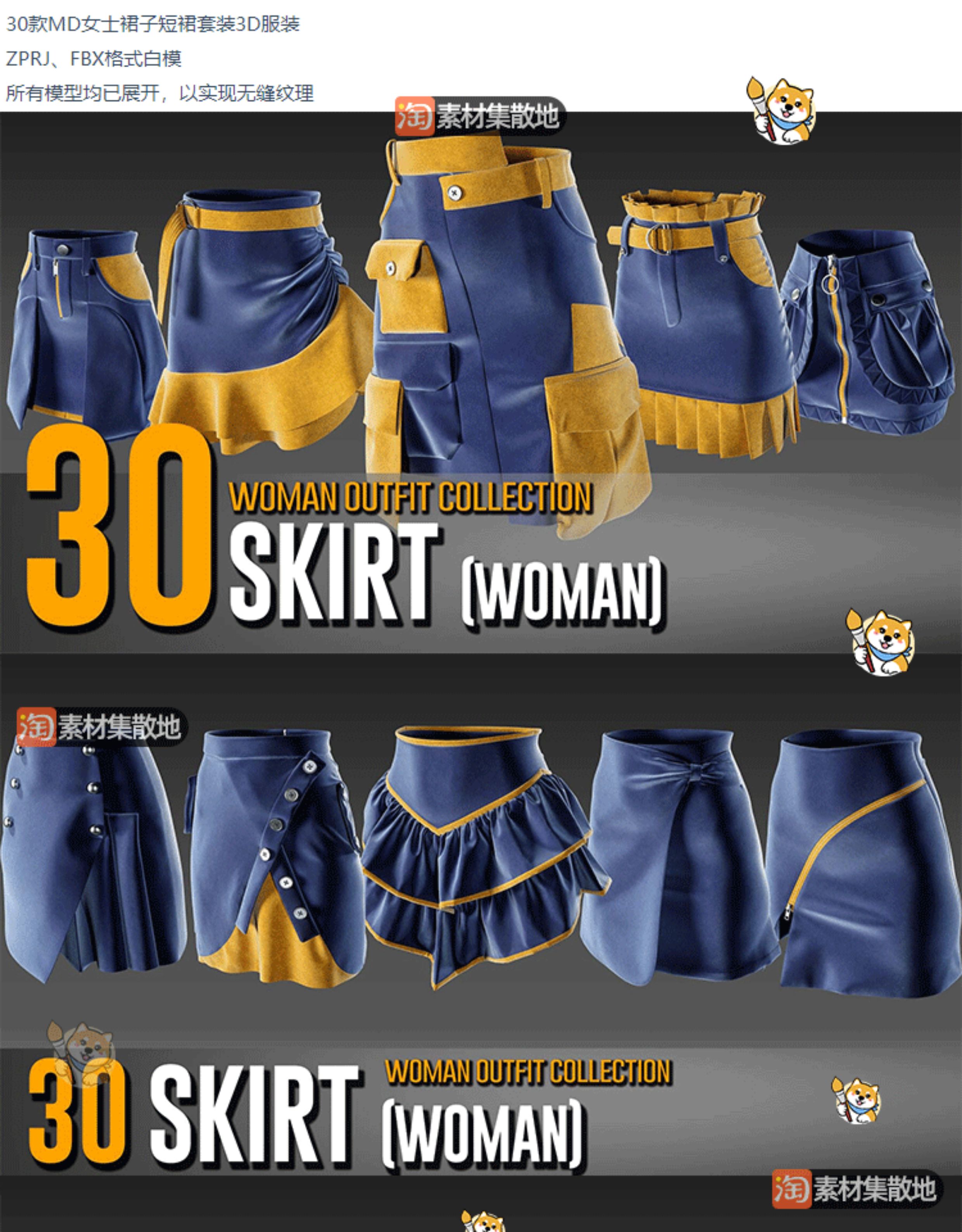 30款女士裙子包臀裙clo3d服装百褶裙短裙服饰ZPRJ模型打版源文件