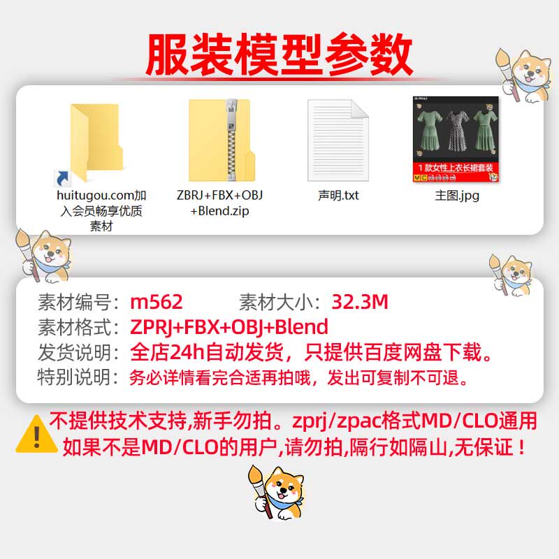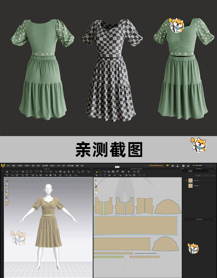 MD/Clo3D衣服模型1款衬衫背心裙子套装服装纸样版片3D模型素材