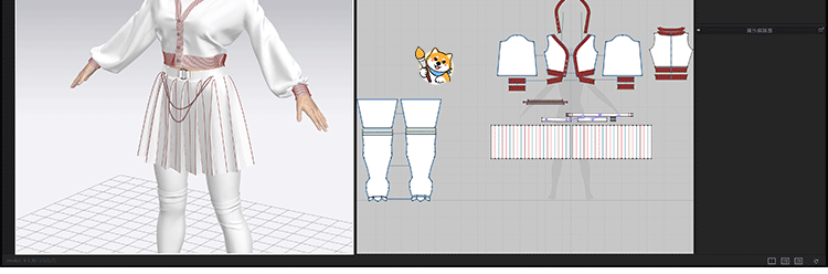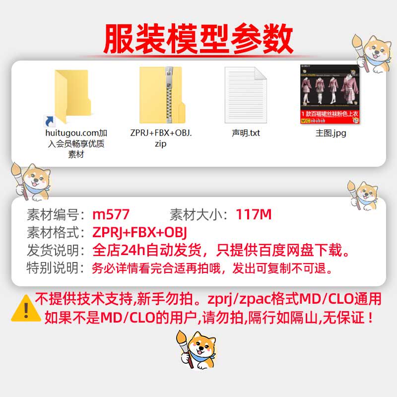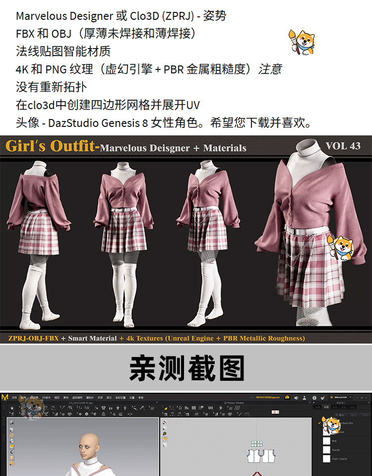 MD/Clo3D衣服模型1款百褶裙丝袜粉色上衣服装纸样版片3D模型素材